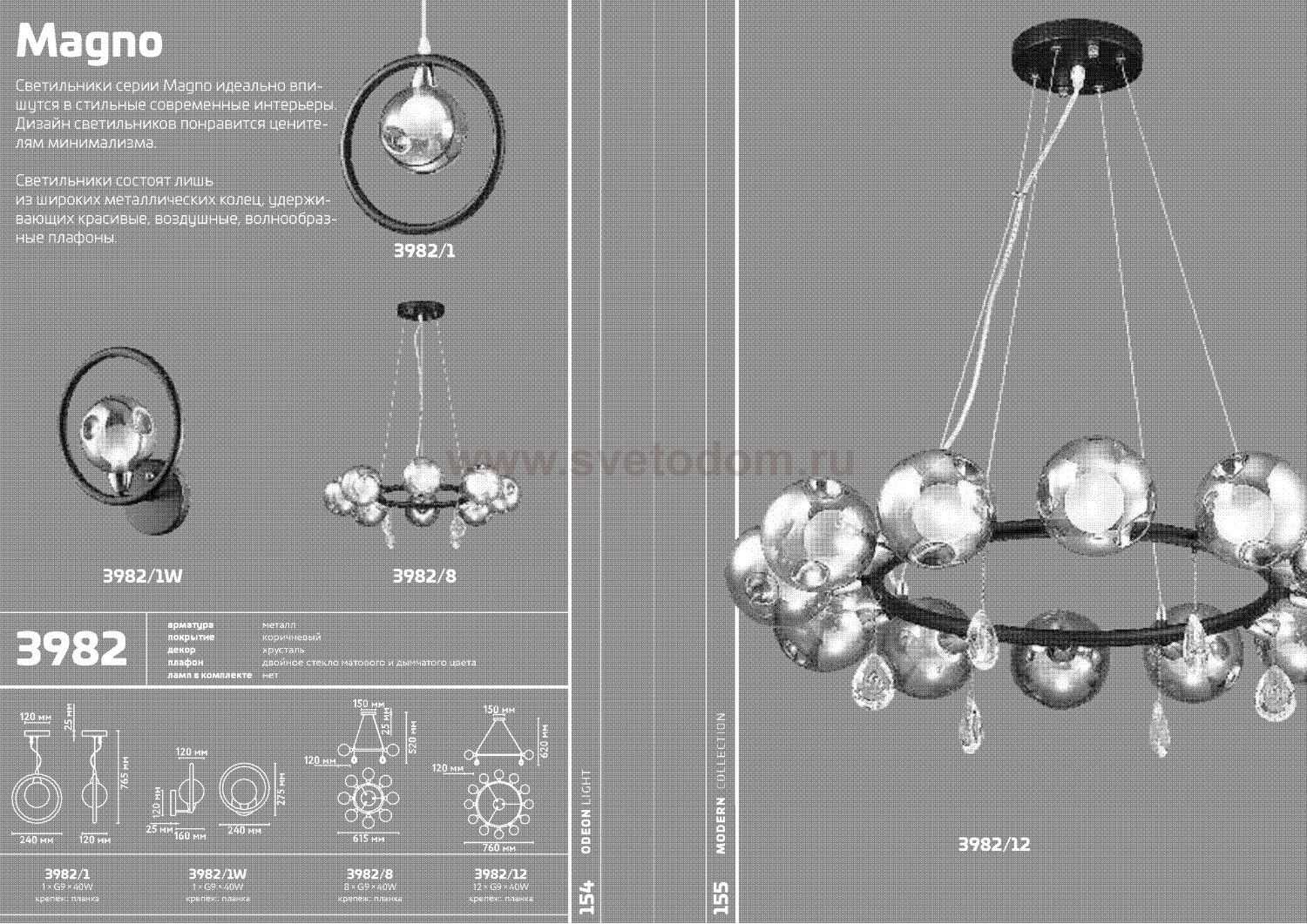 Люстра 3982 / 8 линии Magno идеально впишется в стильные современные интерьеры. Дизайн светильника понравится ценителям минимализма. Люстра состоит лишь из широкого металлического кольца, на котором крепятся красивые, воздушные, волнообразные плафоны. Цветовая гамма также очень приятна: арматура светильника матового черного цвета, стеклянный плафон имеет дымчатый оттенок, создающий мягкий, таинственный свет и комфортную атмосферу. Эта уникальная люстра будет прекрасно смотреться в интерьерах в стиле лофт, минимализм, модерн. Цоколь G9. Мощность 8*40W. Нет ламп в комплекте.