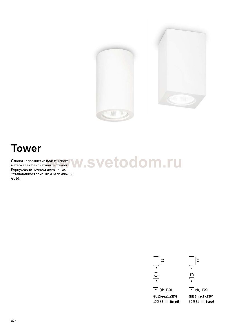 Потолочный светильник от известной итальянской фабрики Ideal lux из каталога Tecnico в современном стиле под артикулом TOWER PL1 SQUARE (155791) серии TOWER имеет ряд отличительных характеристик: Основа крепления из пластикового материала с байонетной системой. Корпус света полностью из гипса. Установливает заменяемые лампочки GU10.