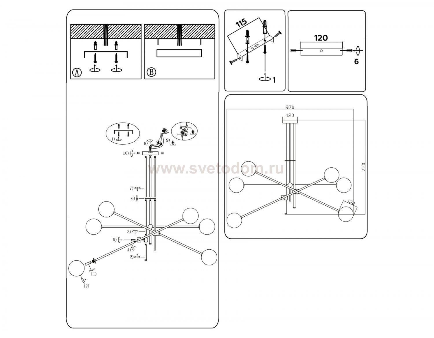 ![]() Люстра на штанге со стеклянными плафонами Ambrella TR303043/8 WH белый E27/8 max 60W 820*820*260 10470 руб.