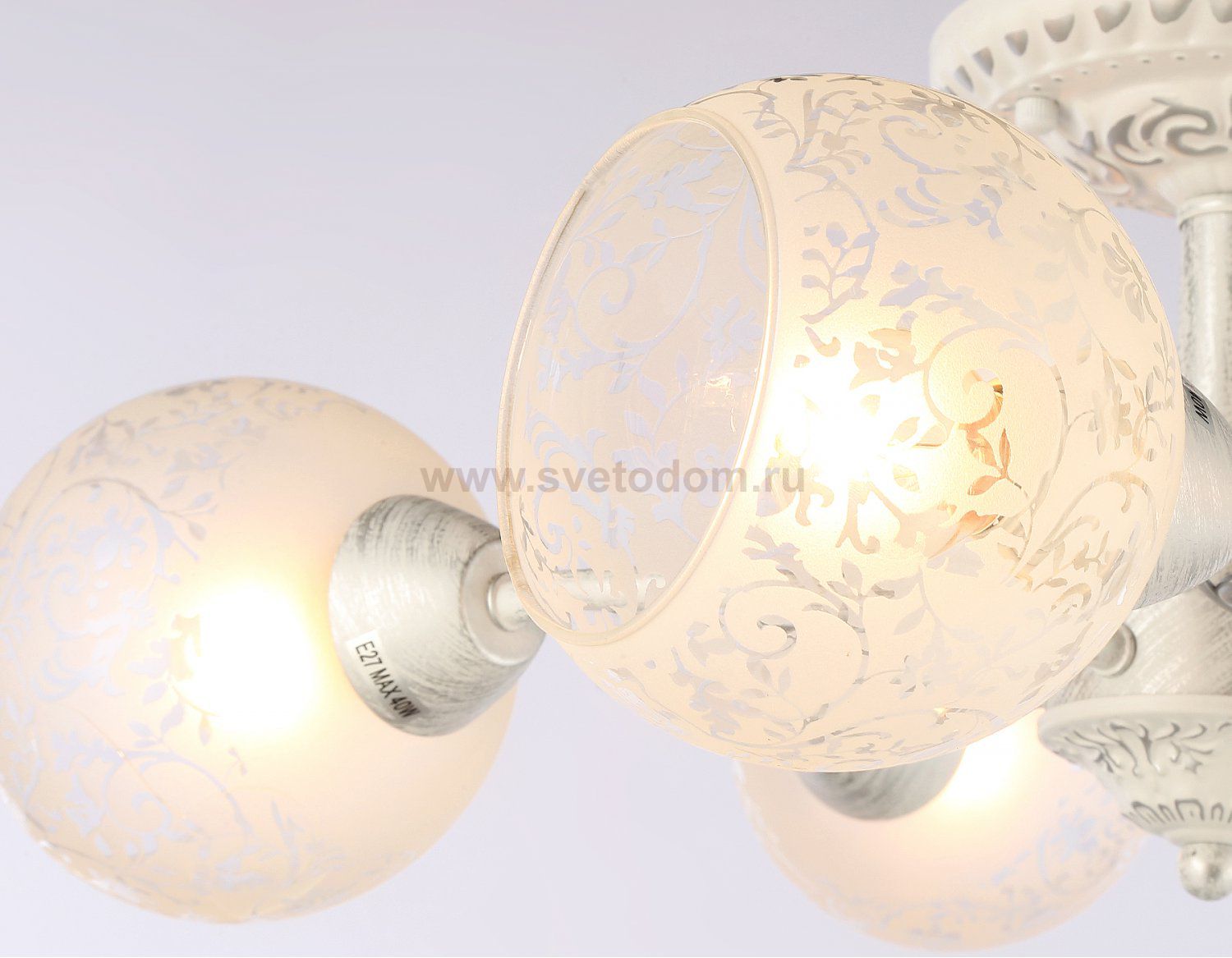 Потолочная классическая люстра из коллекции TRADITIONAL. Модель TR3062 выполнена из металлического корпуса белого и серебряного цвета и плафонов из белого матового стекла. Для данной модели подойдут лампы с цоколем Е27. Люстра будет прекрасным дополнением в любом помещении.