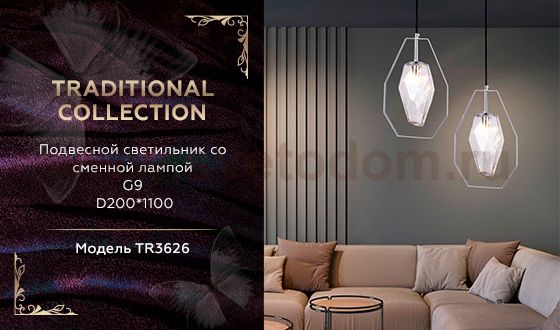Подвесной светильник из коллекции TRADITIONAL. Модель TR3626 представлена в современном стиле лофт. Светильник оригинальной формы, плафон выполнен из прозрачного стекла, каркас изготовлен из металла цвета хром. Для данной модели подойдут лампы с цоколем G9. Светильник будет прекрасным дополнением в любом помещении.