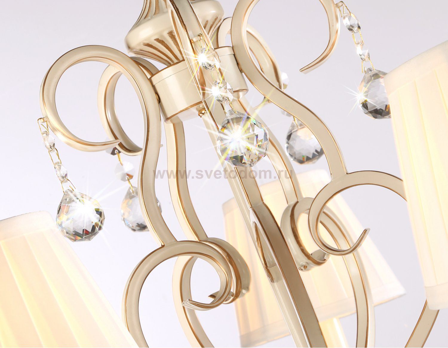 Подвесная люстра с абажурами из коллекции TRADITIONAL. Модель TR4560 представлена в классическом стиле. Люстра выполнена из тканевых плафонов белого цвета и декорирована превосходным прозрачным хрусталем, каркас изготовлен из металла бежевого и золотого цвета. Для данной модели подойдут лампы с цоколем Е14. Люстра будет прекрасным дополнением в любом помещении.