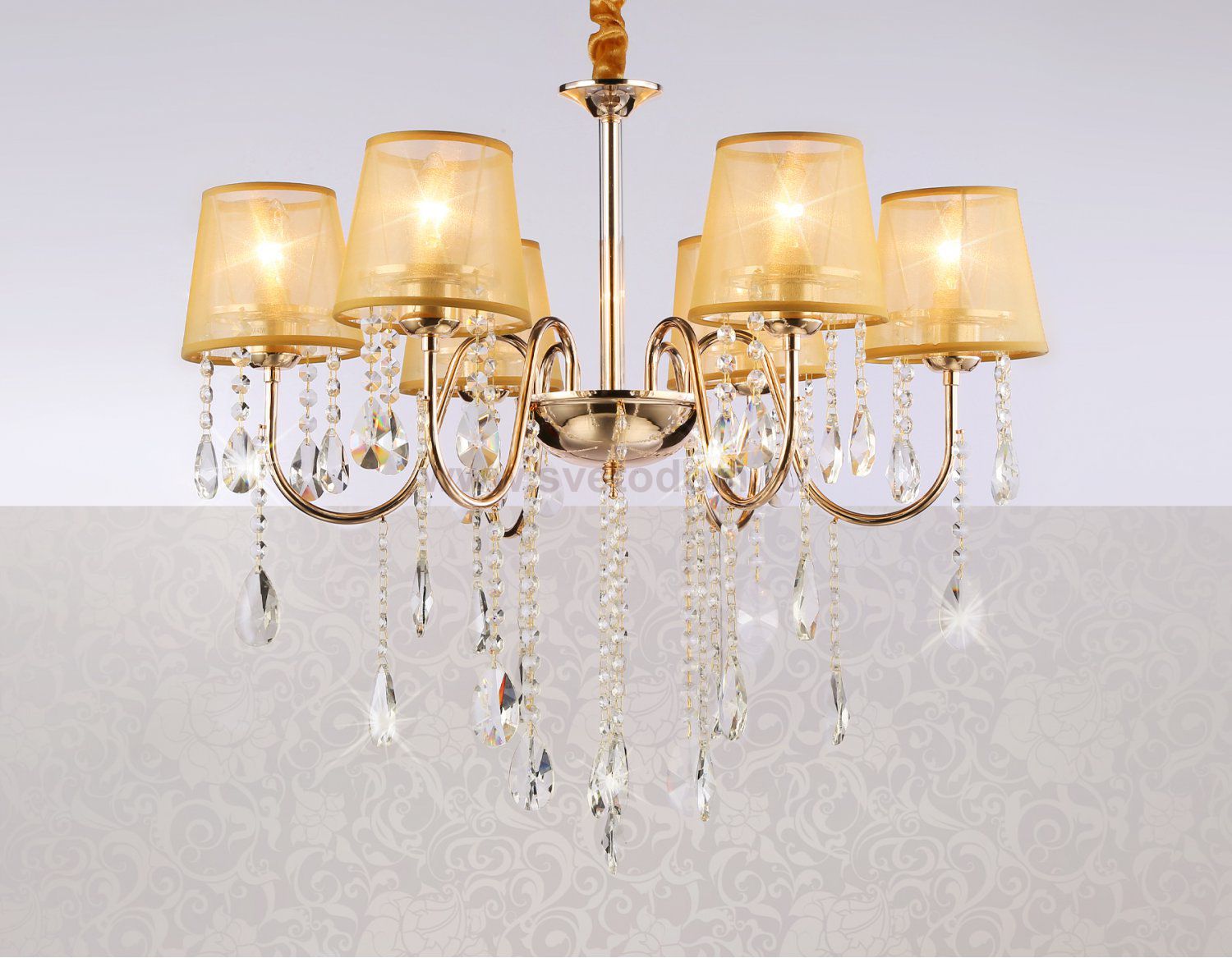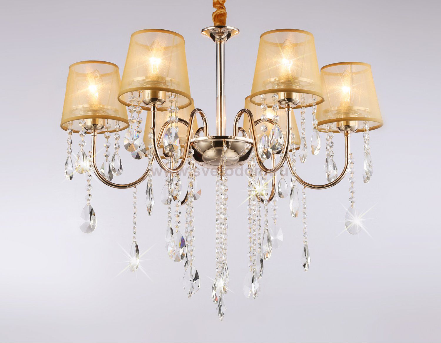 Подвесная люстра с абажурами из коллекции TRADITIONAL. Модель TR4589 представлена в классическом стиле. Люстра выполнена из тканевых плафонов золотого цвета и декорирована превосходным прозрачным хрусталем, каркас изготовлен из металла золотого цвета. Для данной модели подойдут лампы с цоколем Е14. Люстра будет прекрасным дополнением в любом помещении.
