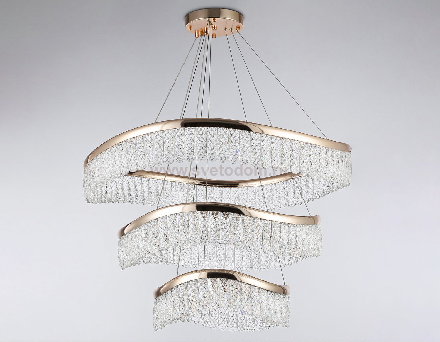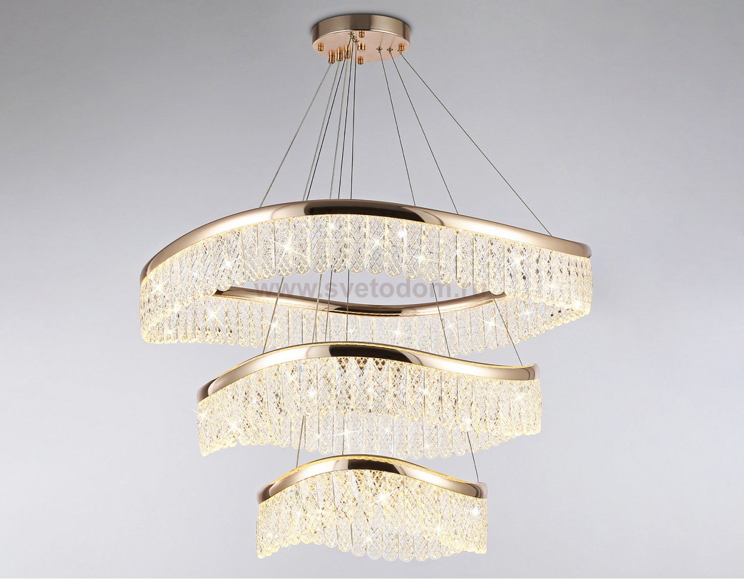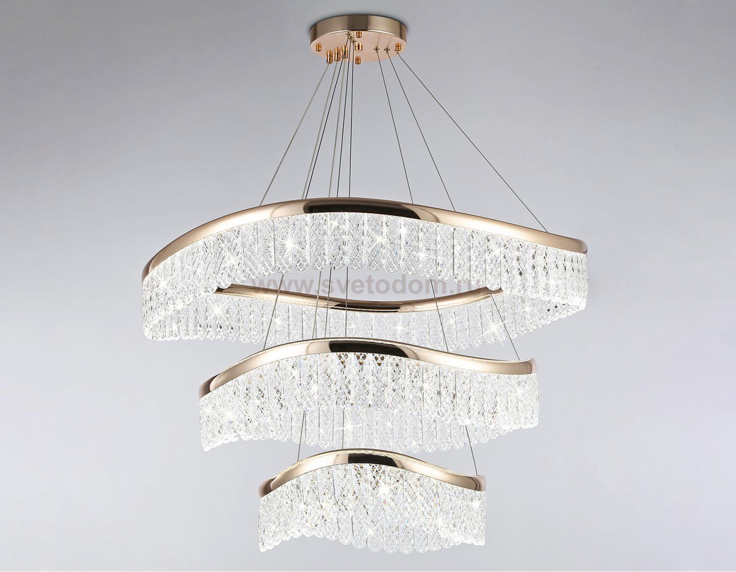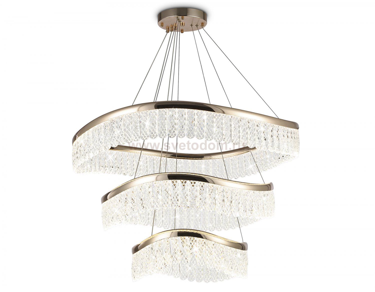 Подвесная светодиодная люстра с хрусталем из коллекции TRADITIONAL. Модель TR49731 представлена в современном стиле неоклассика. Светильник выполнен из превосходного прозрачного хрусталя, каркас изготовлен из металла золотого цвета. Благодаря встроенным в конструкцию светодиодам, вы можете с уверенностью забыть о поиске или замене дополнительных ламп. Данная модель подходит для натяжных потолков и будет прекрасным дополнением в гостиной или спальне.
