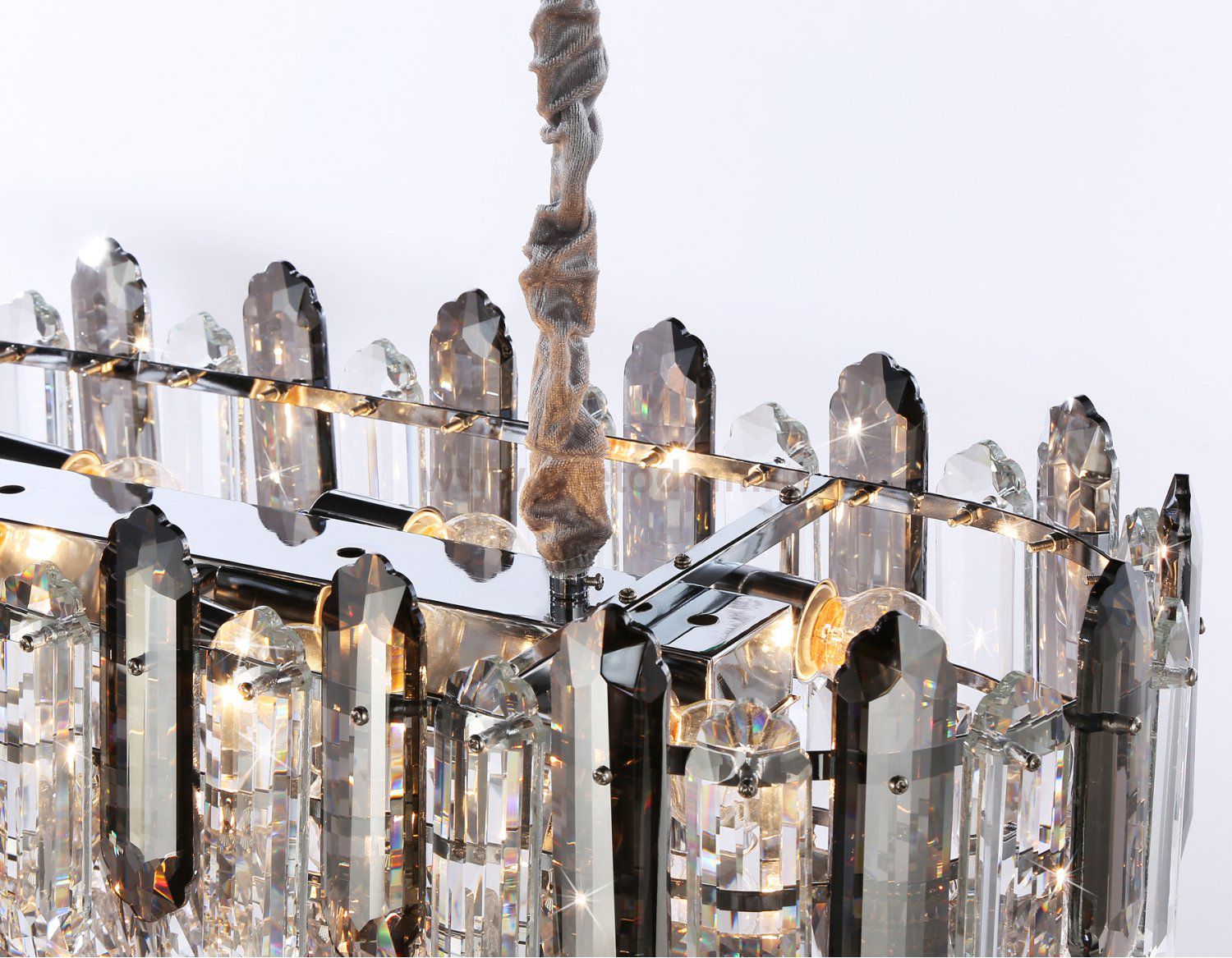Подвесная люстра из коллекции TRADITIONAL. Модель TR5199 представлена в стиле неоклассика. Светильник выполнен из металлического каркаса цвета хром и превосходного прозрачного и дымчатого хрусталя. Для данной модели подойдут лампы с цоколем Е27. Люстра будет прекрасным дополнением в любом помещении.