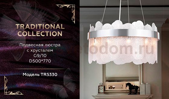 Подвесная люстра из коллекции TRADITIONAL. Модель TR5330 представлена в современном стиле Арт-деко. Светильник выполнен в цвете хром, с превосходным матовым хрусталем, каркас изготовлен из металла. Для данной модели подойдут лампы с цоколем G9. Светильник будет прекрасным дополнением в гостиной или спальне.