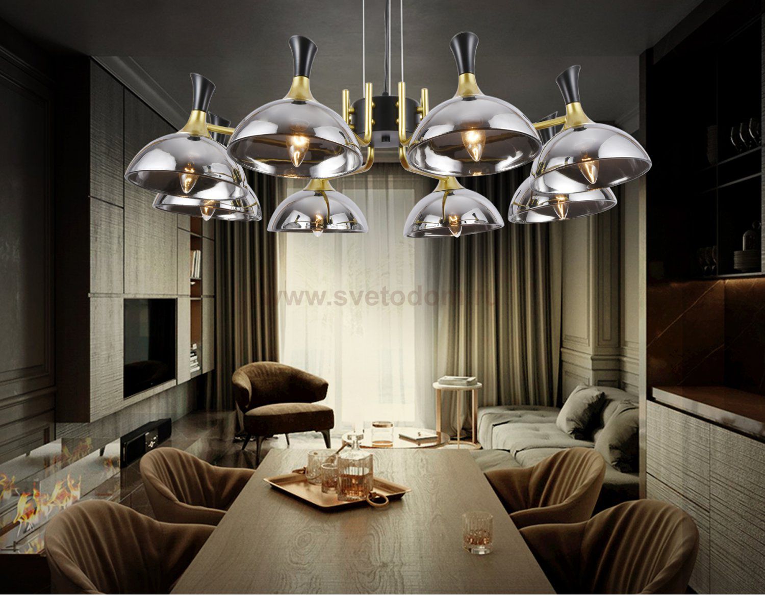 Подвесная люстра из коллекции TRADITIONAL. Модель TR9084 представлена в современном стиле Лофт. Светильник оригинальной формы, выполнен в сочетани черного и золотого цвета, с превосходными стеклянными плафонами дымчатого цвета, каркас изготовлен из металла. Для данной модели подойдут лампы с цоколем Е27. Светильник будет прекрасным дополнением в гостиной или спальне.