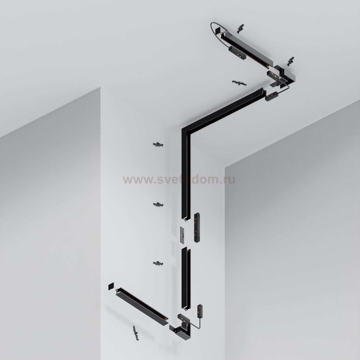 Комплектующие для низковольтной магнитной трековой системы Exility в черном и белом цветах. Разнообразие аксессуаров позволяет собрать свою уникальную конструкцию для накладного монтажа, подвесного, встраиваемого под гипсокартон и встраиваемого в натяжные потолки.