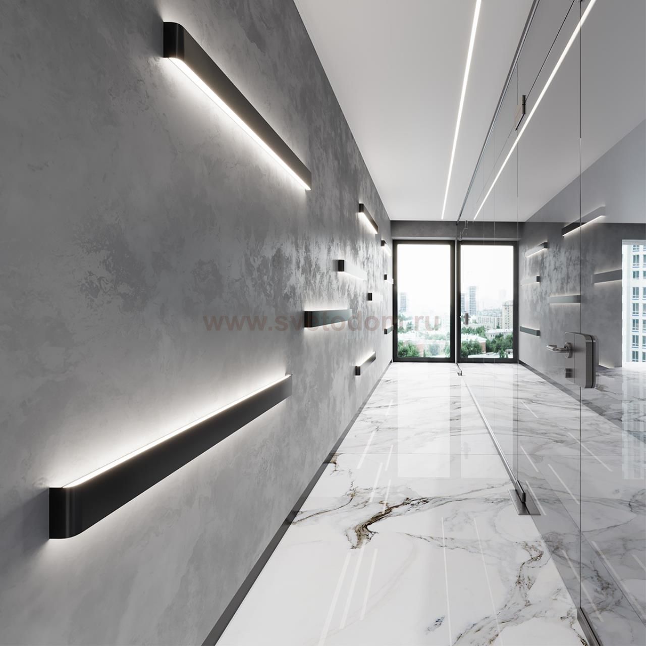 Framant - модные настенные подсветки с отраженным светом в трех цветах: белый, черный и золотой, которые могут использоваться, как вертикально и горизонтально. Светильники отлично будут смотреться в настенных молдингах, подсвечивая их рельефность, также их можно успешно использовать горизонтально для мягкой комфортной подсветки коридоров, лестничных пролетов, междверных пространств и стен кафе, где требуется комфортное и мягкое освещение.