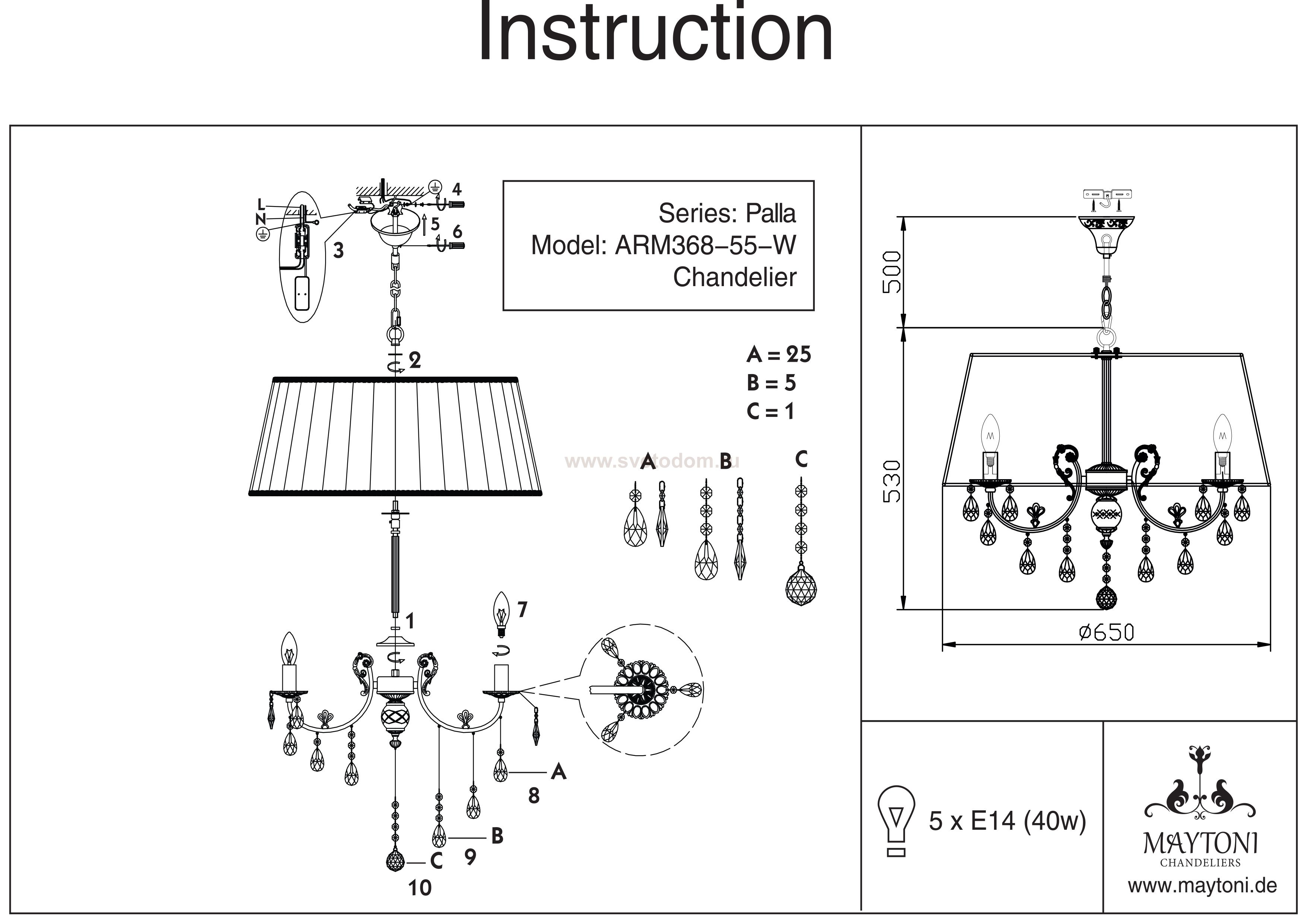 Максимальная потребляемая мощность лампы, которую можно использовать в люстре.
