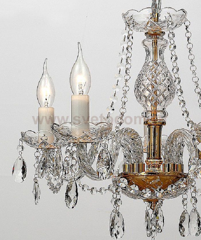 арматура золотого цвета, хрусталь высшего качества и стеклянные рожки и блюдца прозрачного цвета Штрих-код