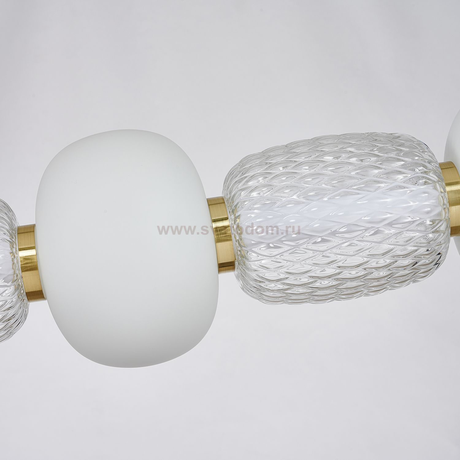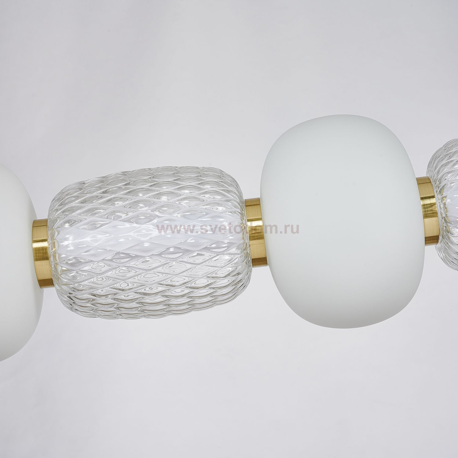 каркас цвета золота, плафоны в виде бусин разнообразных форм из выдувного стекла двух видов - прозрачного и цвета опала, часть каркаса фиксируется тро Серия
