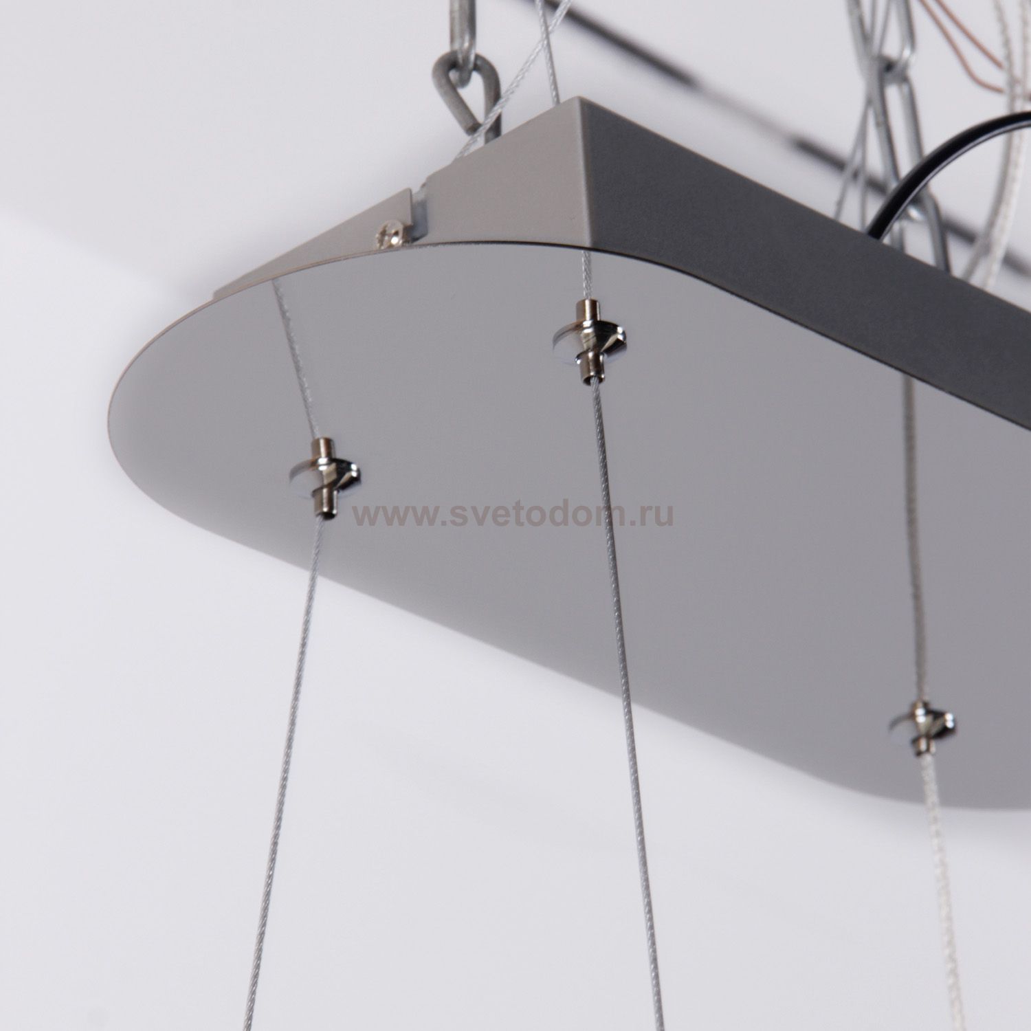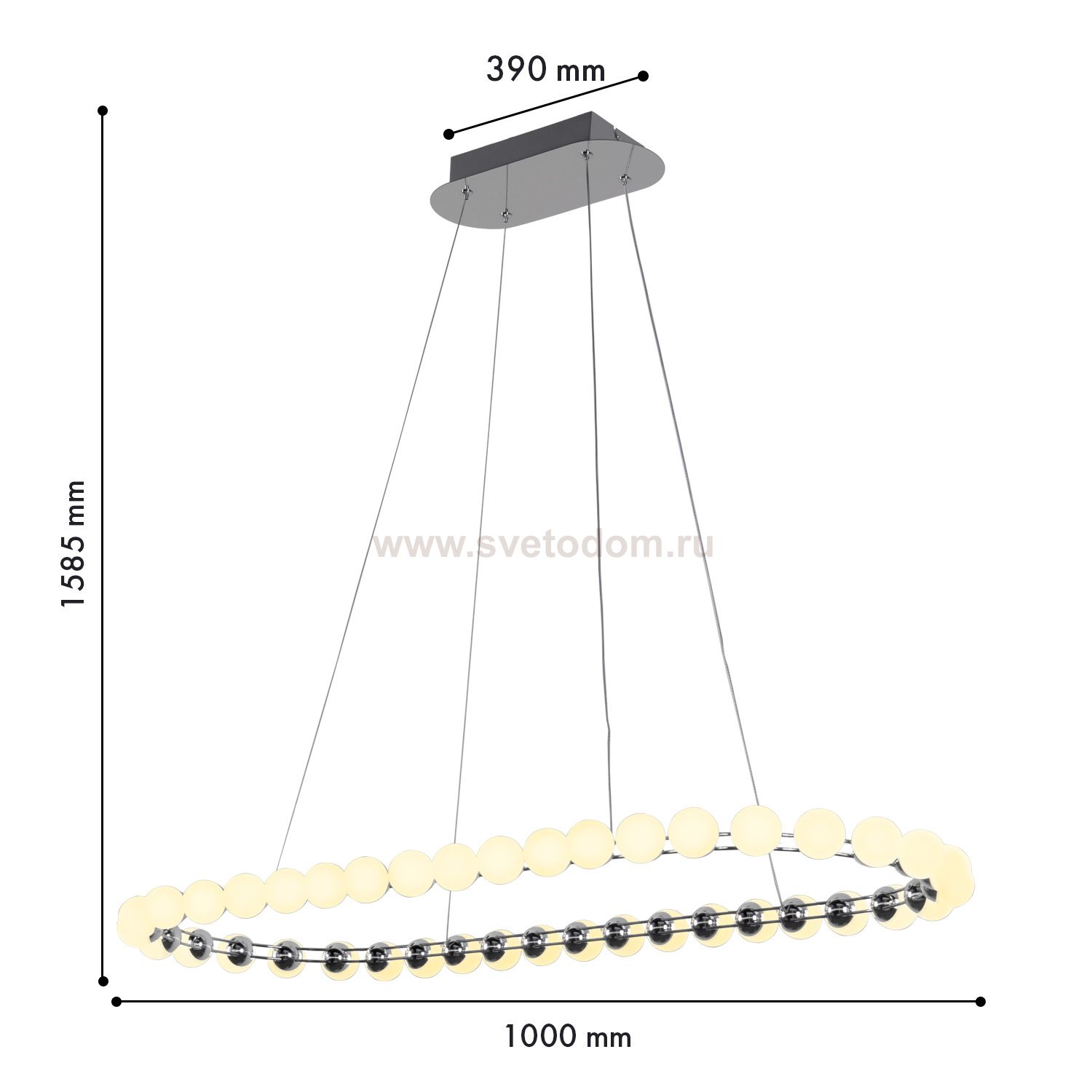 Подвесная люстра длиной 100 см с каркасом в цвете хром, служащим проводником электричества, кольцо украшено белыми акриловыми шариками в качестве плаф Серия