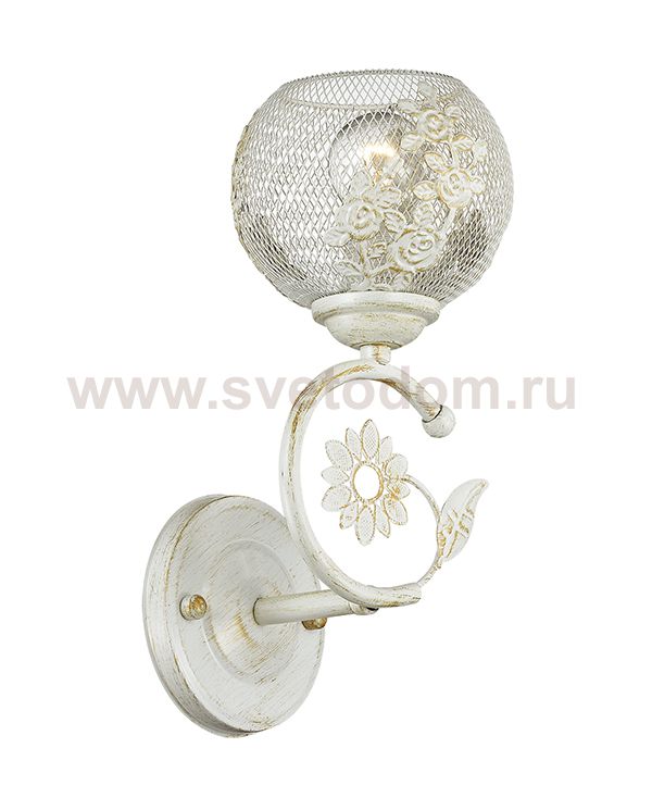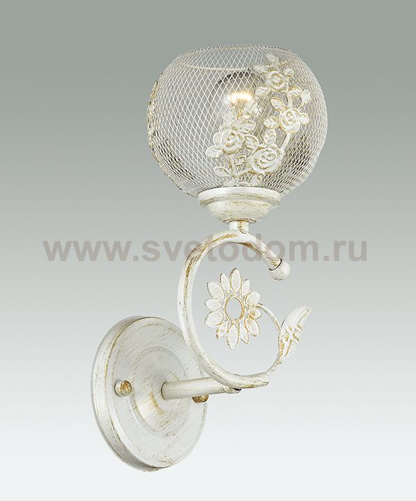 Арматура, декор: металлические элементы в стиле флористика; плафон: металлический сетчатый абажур с декором Материал плафона