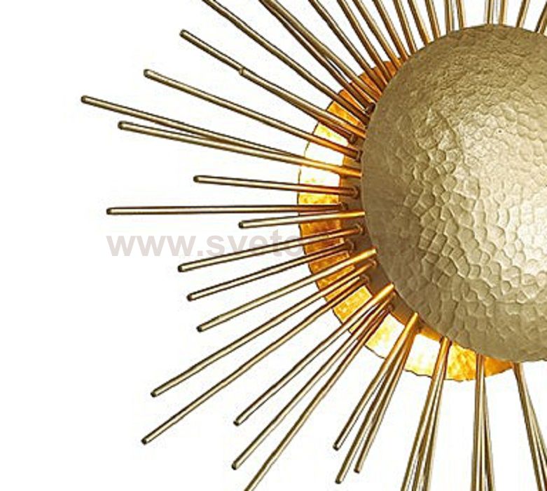 Дизайн линии Sole выполнен в форме солнца с расходящимися лучами и отвечает последним модным тенденциям в интерьере. Металлическое основание окрашено в цвет золота. Светильник в благородном цвете и невероятном дизайне будет прекрасно смотреться в любом современном интерьере и создаст атмосферу загадочности