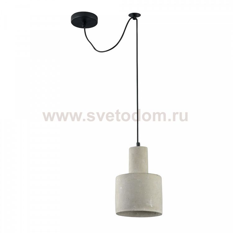 Металлическая арматура в черном цвете. Бетонный плафон серого оттенка. Дополнительное потолочное крепление. Высота регулируется ш