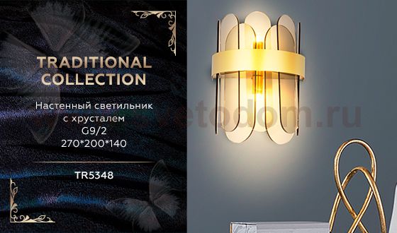 Настенный светильник из коллекции TRADITIONAL. Модель TR5348 представлена в современном стиле Арт-деко. Светильник выполнен в золотом цвете, с превосходным дымчатым хрусталем, каркас изготовлен из металла. Для данной модели подойдут лампы с цоколем G9. Светильник будет прекрасным дополнением в гостиной или спальне.