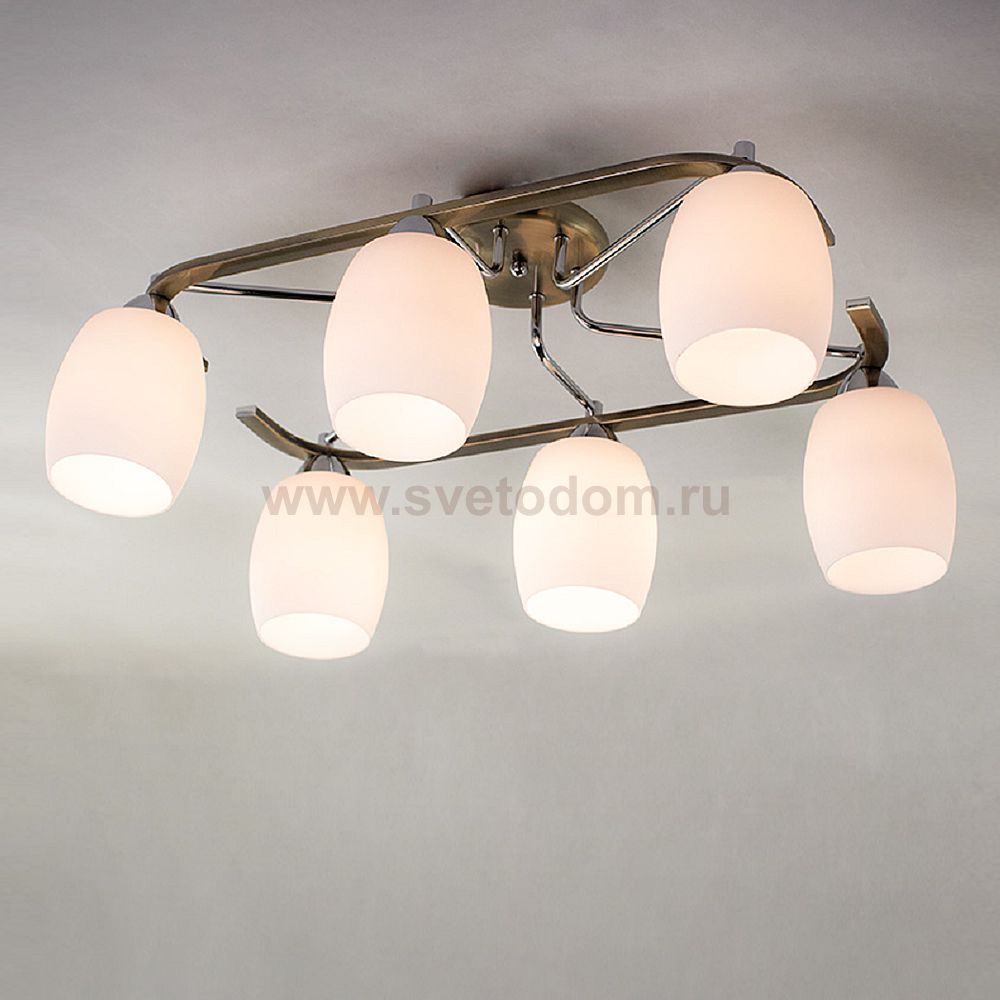 Длина 62см, Ширина 45см, Высота 26,5см, Молочнобелые выдувные плафоны, Стальная арматура с сочетанием цветов Хром и Старая Бронза Штрих-код