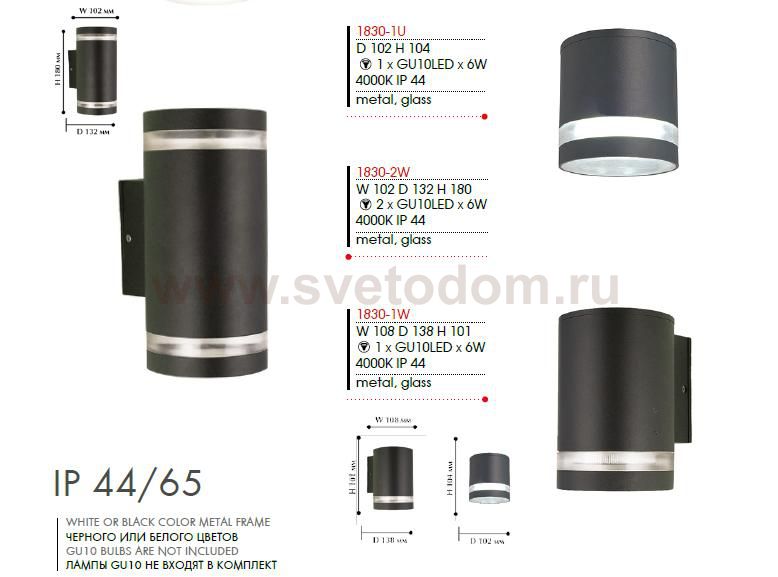 2*GU10LED*6W, IP44, excluded Класс IP защиты