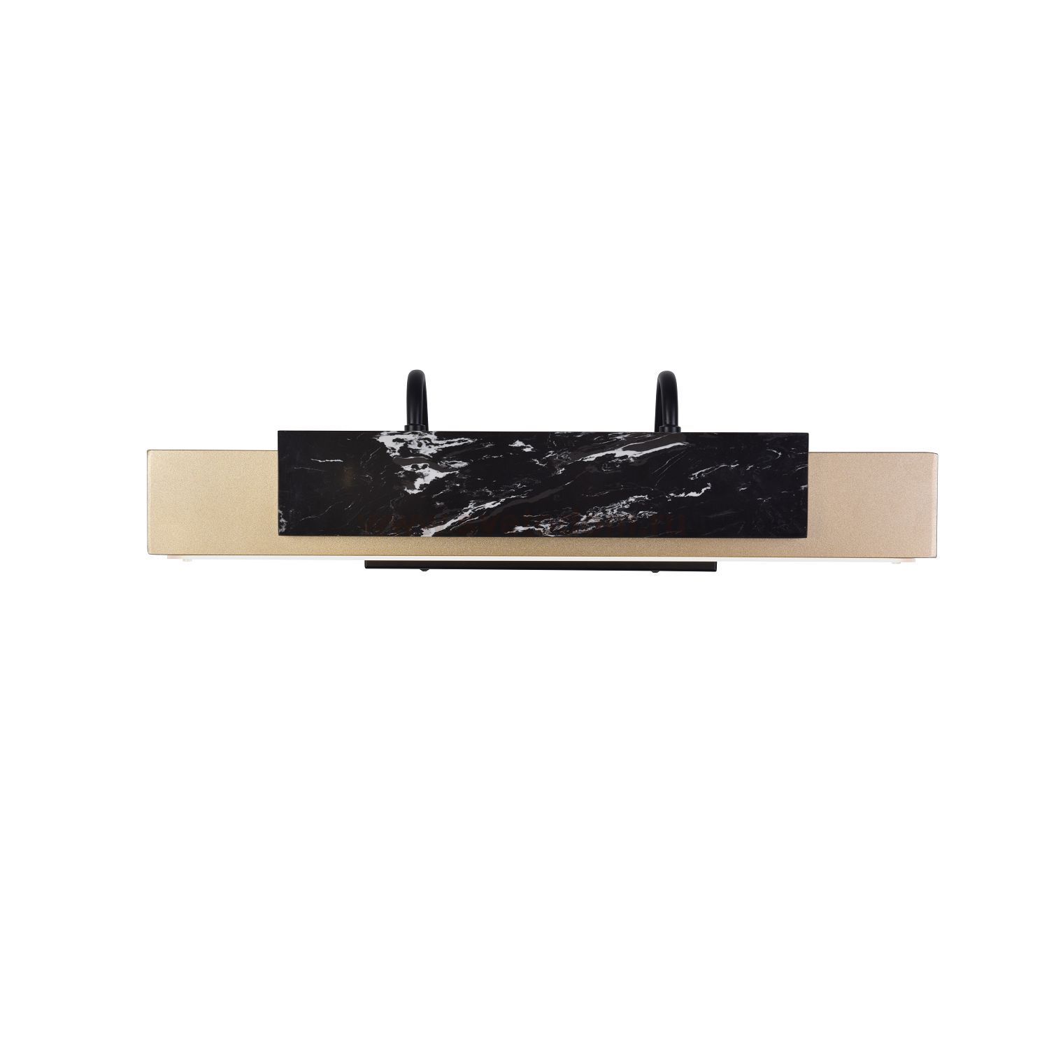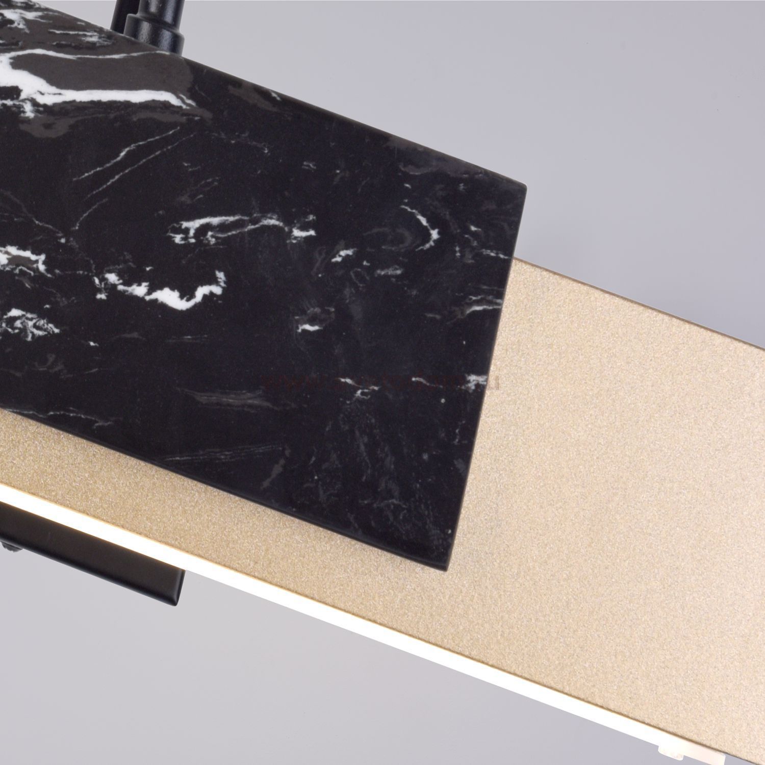 каркас черного цвета, встроенная лента LED с акриловым рассеивателем цвета золота и декор в стиле черного мрамора. Декор