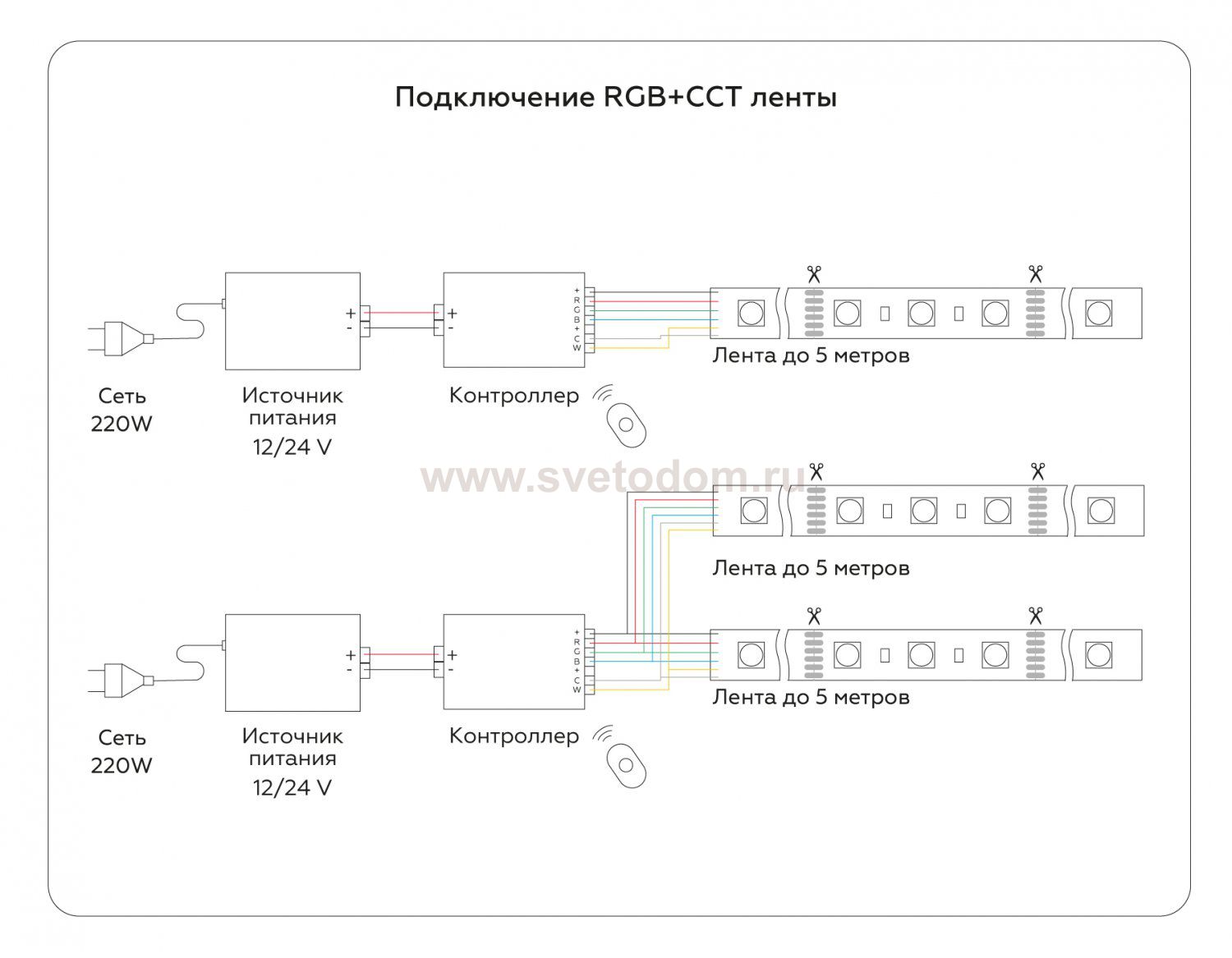 RGB+CCT 3000-6500 Общая мощность, Вт