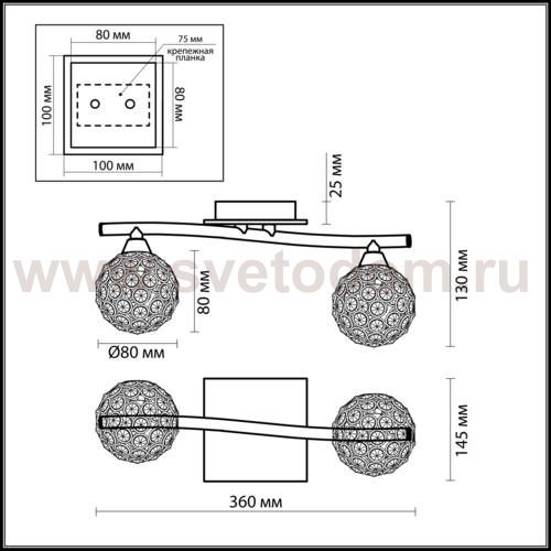 плафон: сферический из металлической решетки с хрустальными элементами, арматура: металл, декор: хрусталь Материал плафона