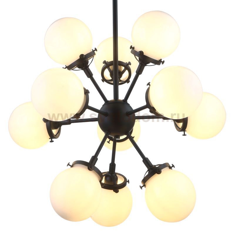 Люстра подвесная 2106/01/11P Stilfort серии Ring - креативная модель в стиле модерн. Арматура изготовлена из металла, полностью в черном цвете. Плафоны люстры из матового стекла, выполнены в белом цвете.