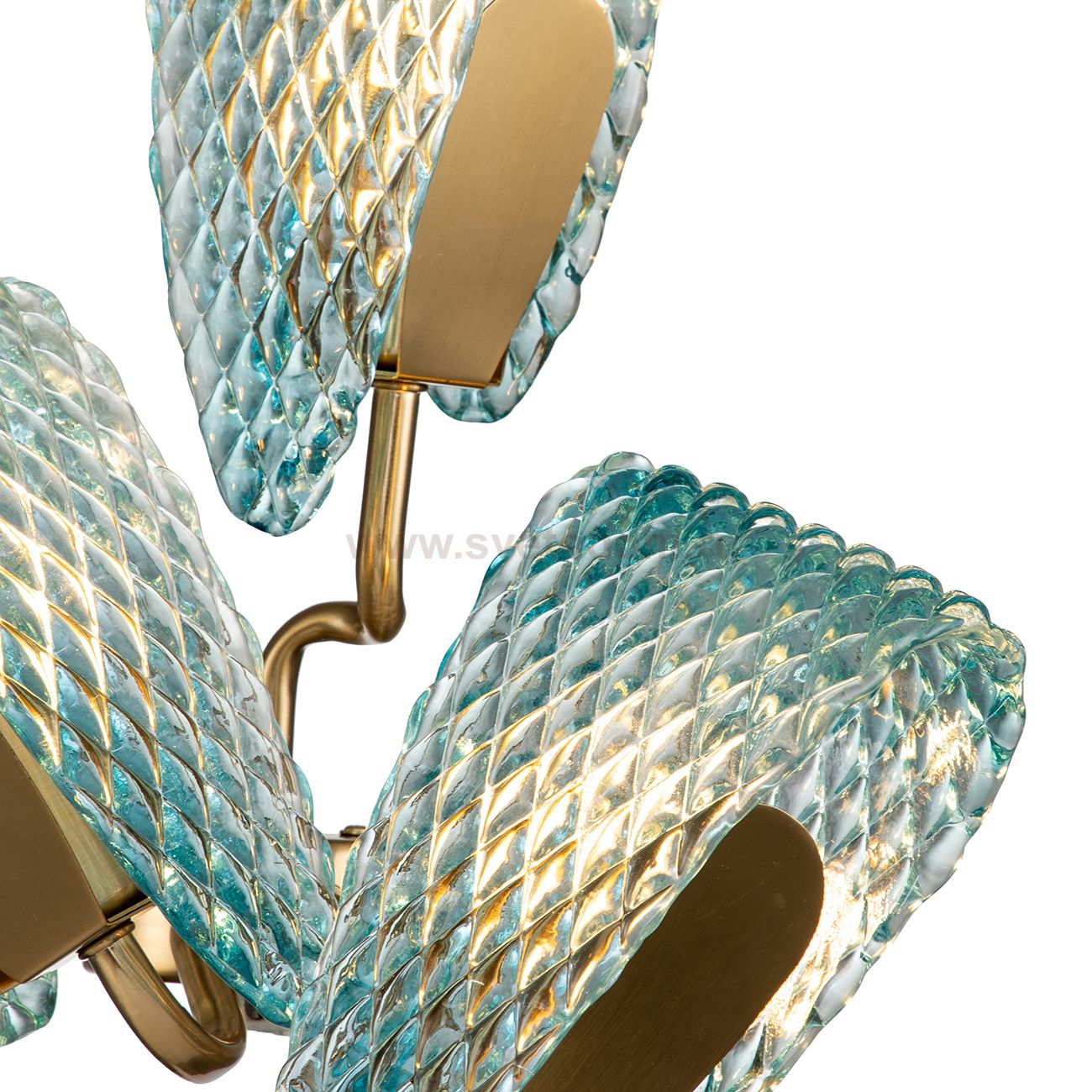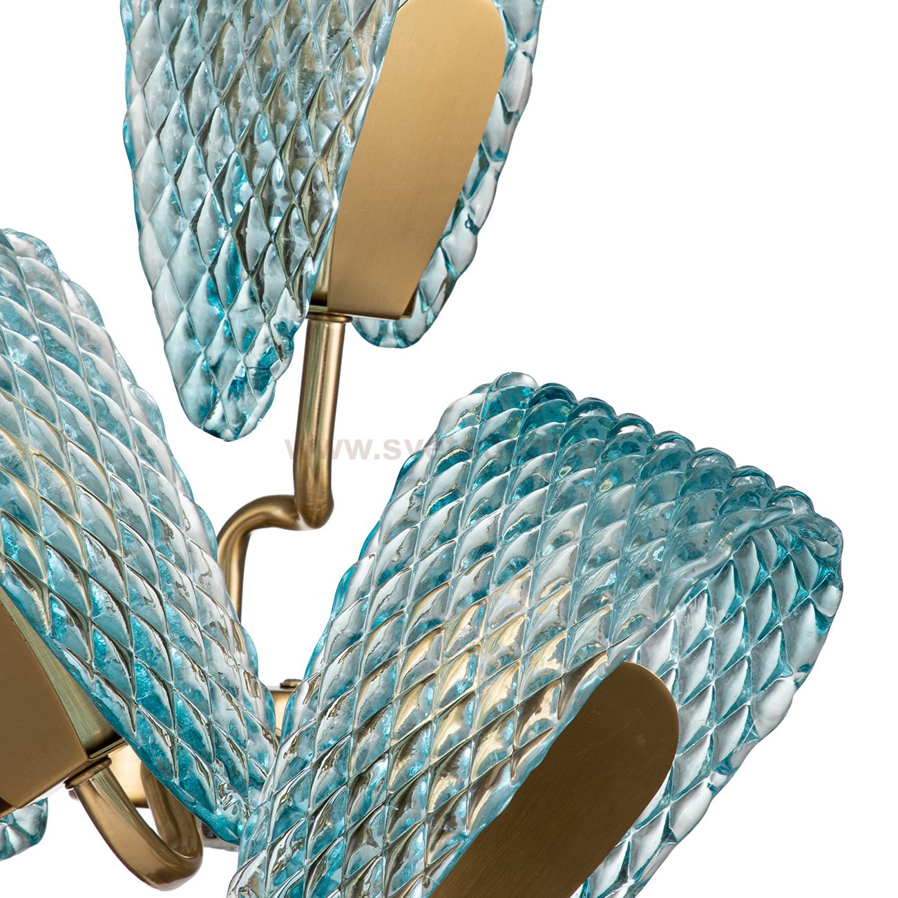 Пламенная коллекция FLESS вдохновлена мифическим персонажем - огненным фениксом. Серия представлена подвесными светильниками, светильником на штанге и настенным светильником.Конструкция светильников выполнена в плавных летящих металлических линиях, что отражает возвышенность птицы Феникс. Фактурные стеклянные плафоны выполнены в сложной изогнутой форме, они, словно оперение, хаотично расположены на арматуре. Проходящий через них свет превращается в настоящий огненный танец. Идея живительного для феникса огня также нашла отражение в цветах коллекции: бронзовом, янтарном и голубом. Размер 350*230*340 Мощность E14 40W*3 Цвет БРОНЗА/ГОЛУБОЙ Материал МЕТАЛЛ/СТЕКЛО