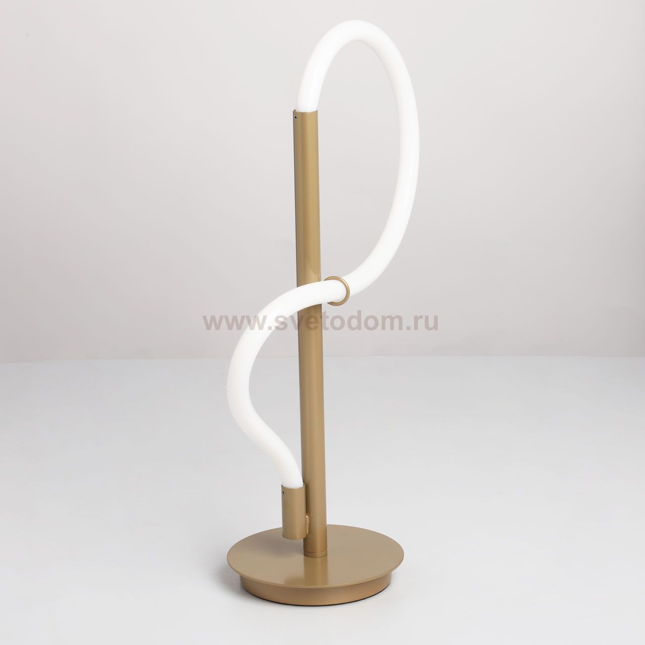 Металлическое основание настольной лампы окрашено в цвет перламутрового золота. Гибкий плафон настенного бра выполнен из белого матового силикона. Комментарий