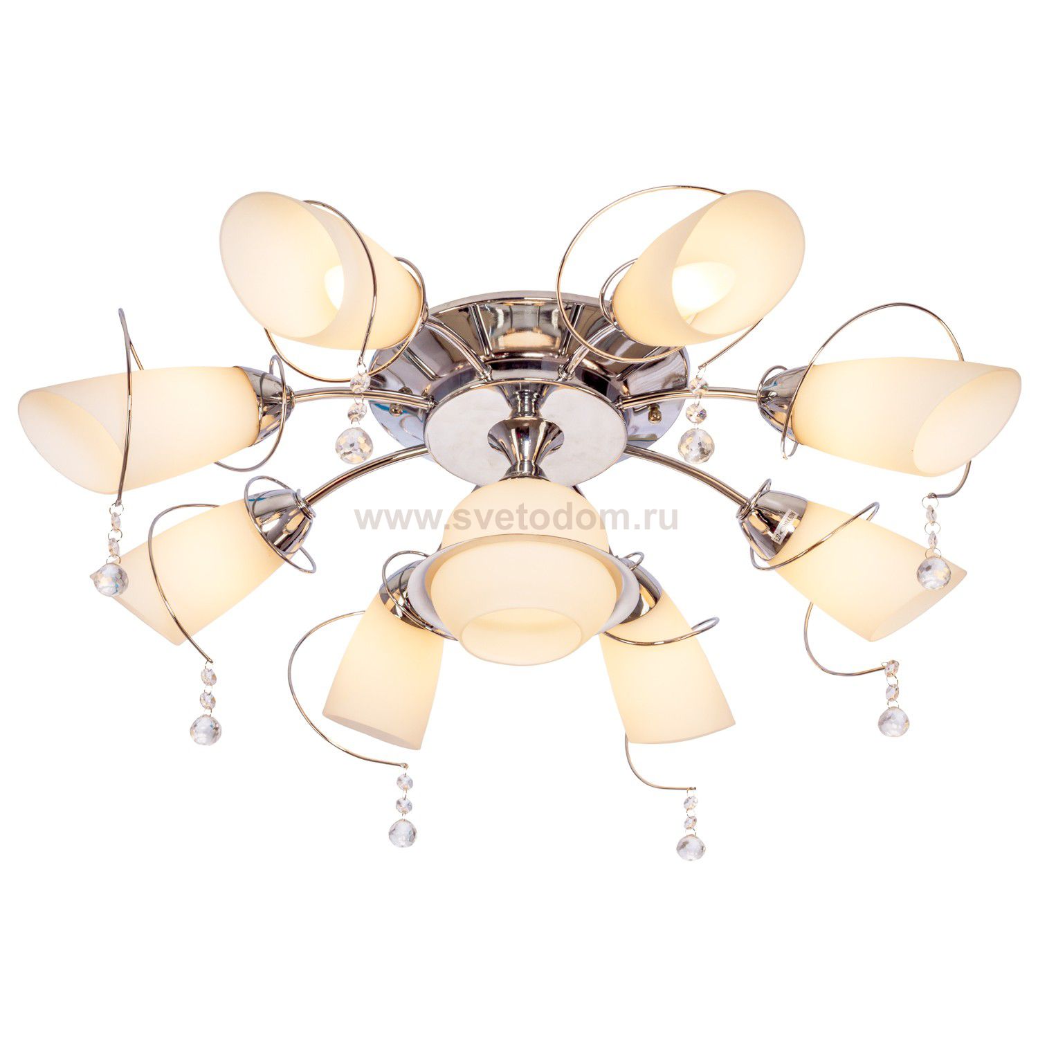 Потолочный светильник 9062/8+1CR MK от бренда ЭкономСвет. Каркас выполнен из материала металл, цвет хром. Плафоны (светорассеиватели) выполнены из материала стекло, цвет белый матовый. Цоколь E27 рассчитан на лампы максимальной мощности до 40 Вт, а максимальная площадь освещения составит до 20 м?.