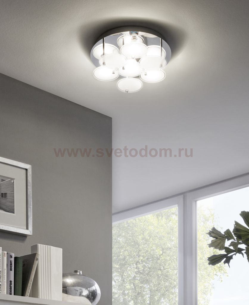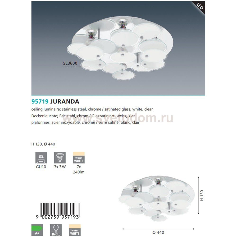 Светодиодный потол. светильник JURANDA, 7х3W(GU10), ?440, нерж. сталь, хром/сатин. стекло, белый, прозрач. применяется преимущественно в домашнем освещении с использованием стандартных выключателей и переключателей для сетей 220V.