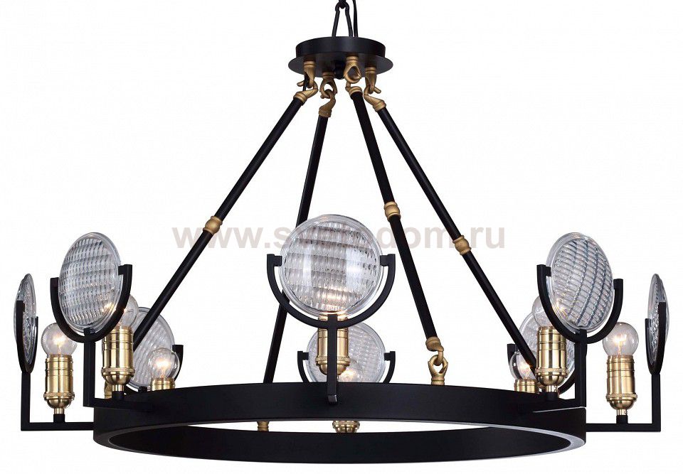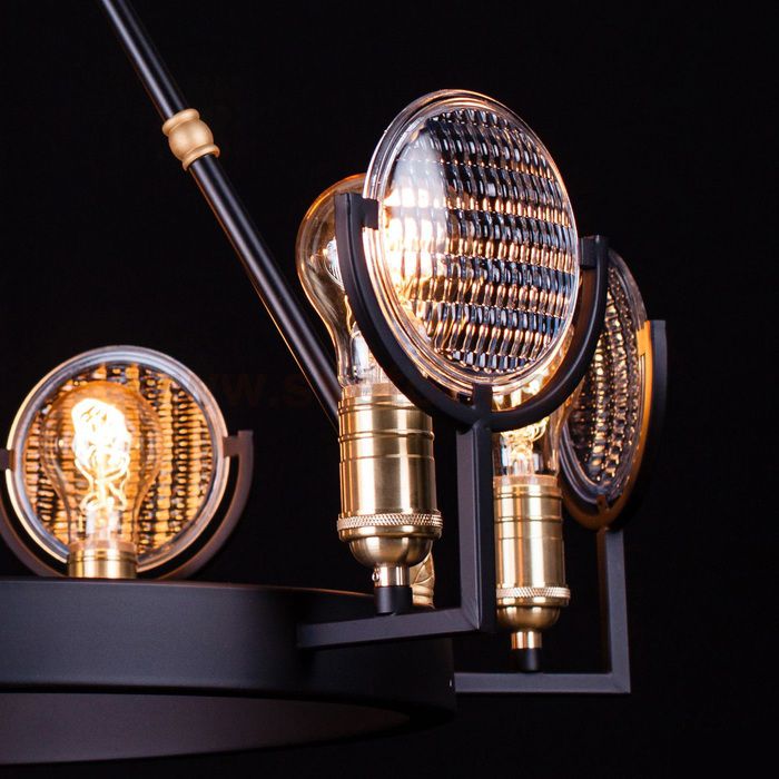 металл черного цвета, декоративные цоколи - золото, стекло в стиле автомобильных фар Материал плафона