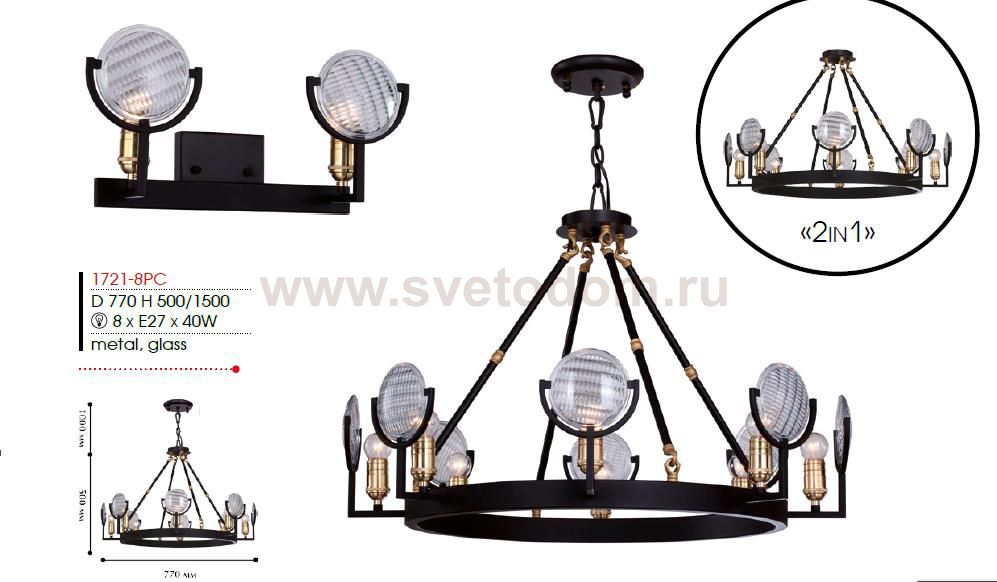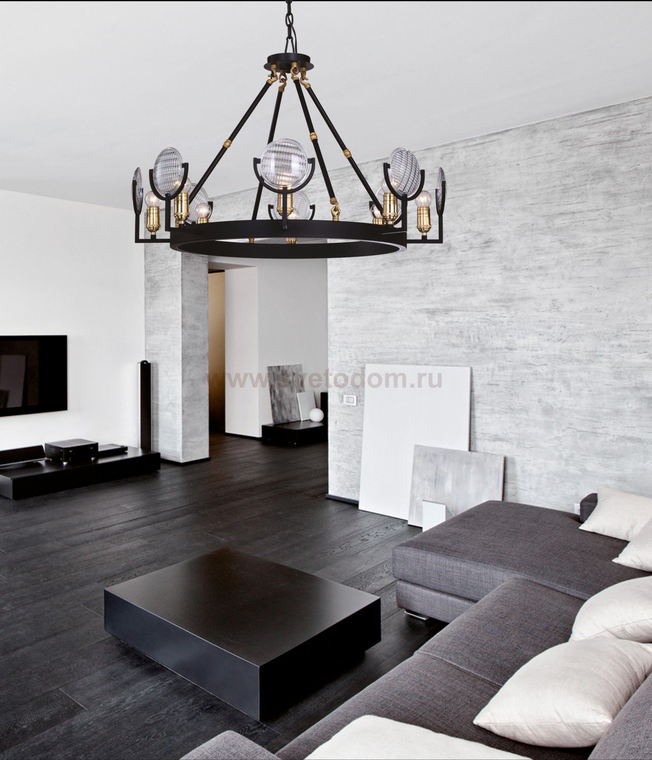 металл черного цвета, декоративные цоколи - золото, стекло в стиле автомобильных фар Комментарий