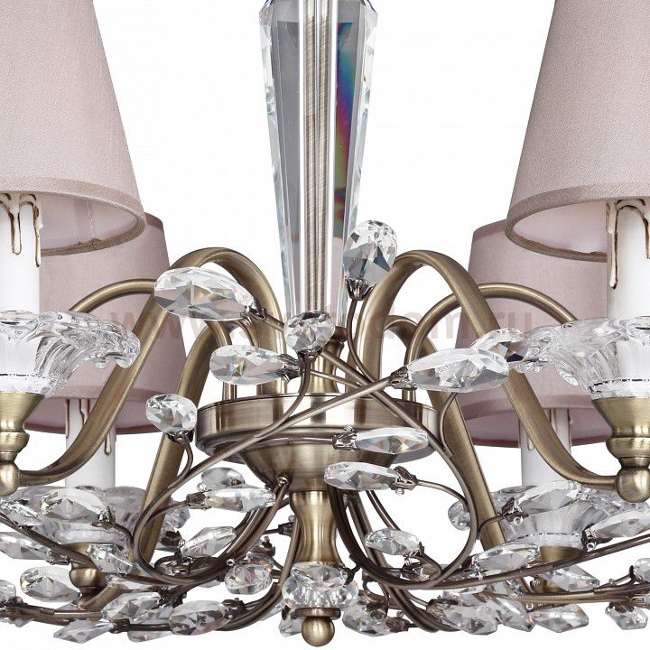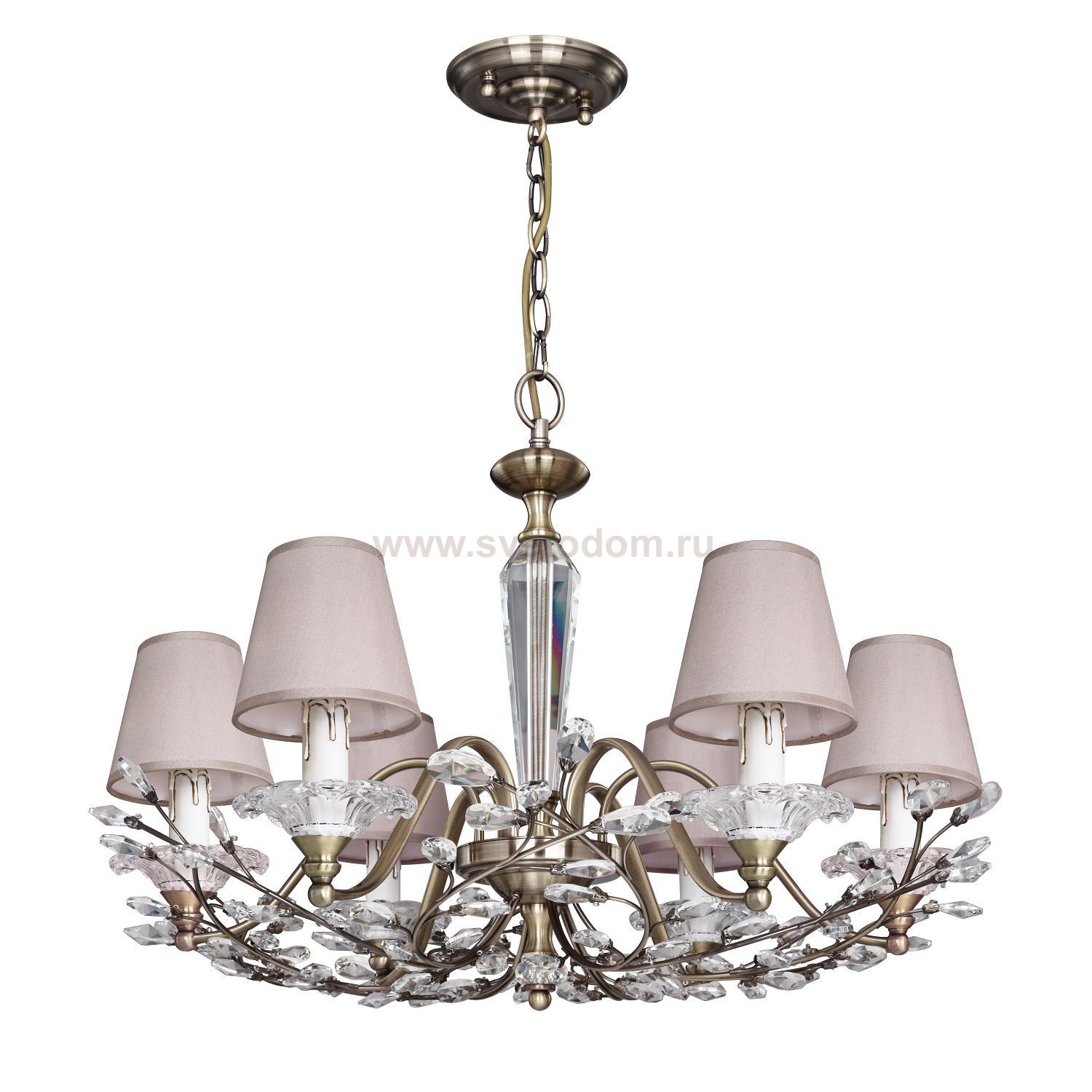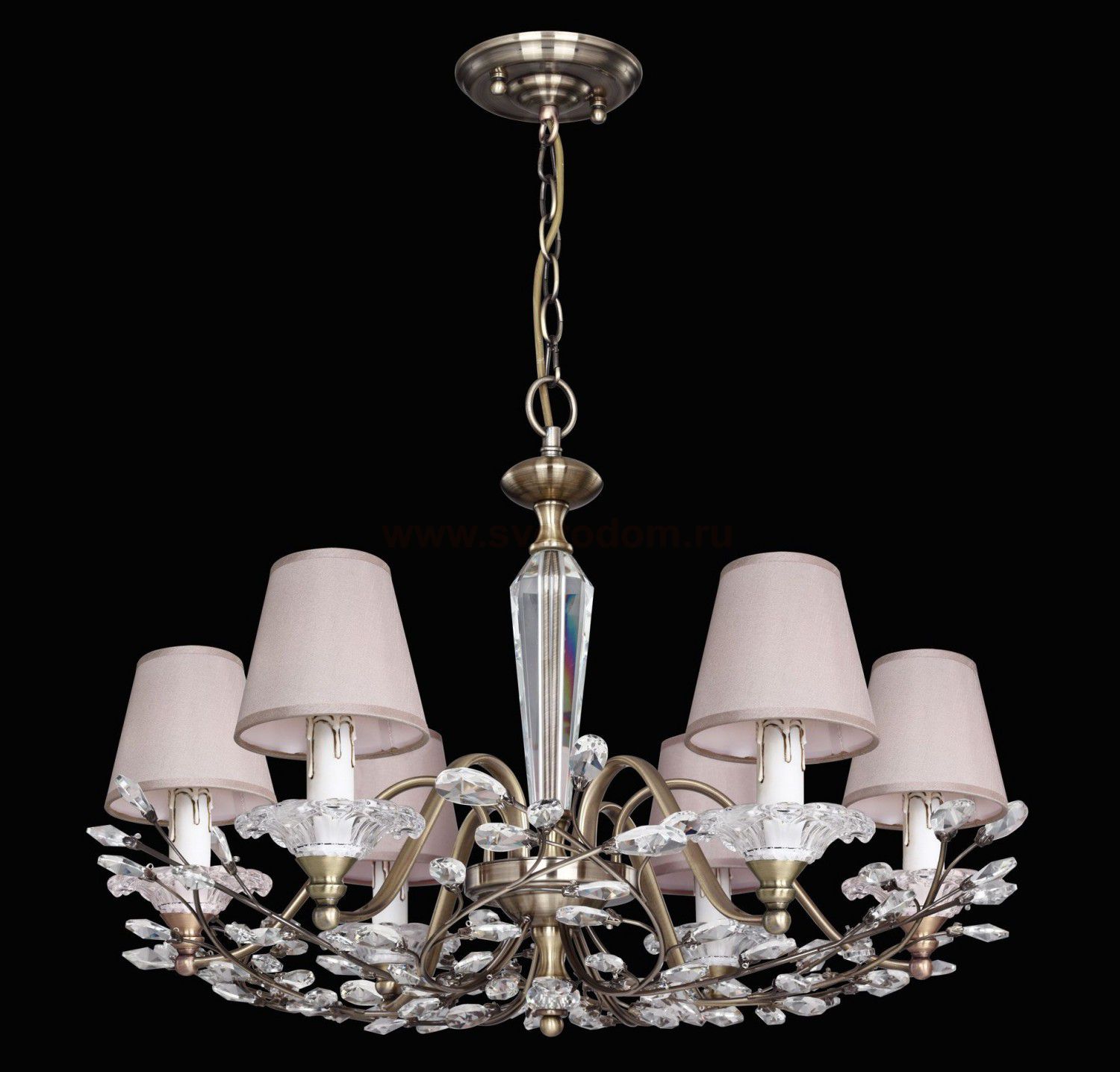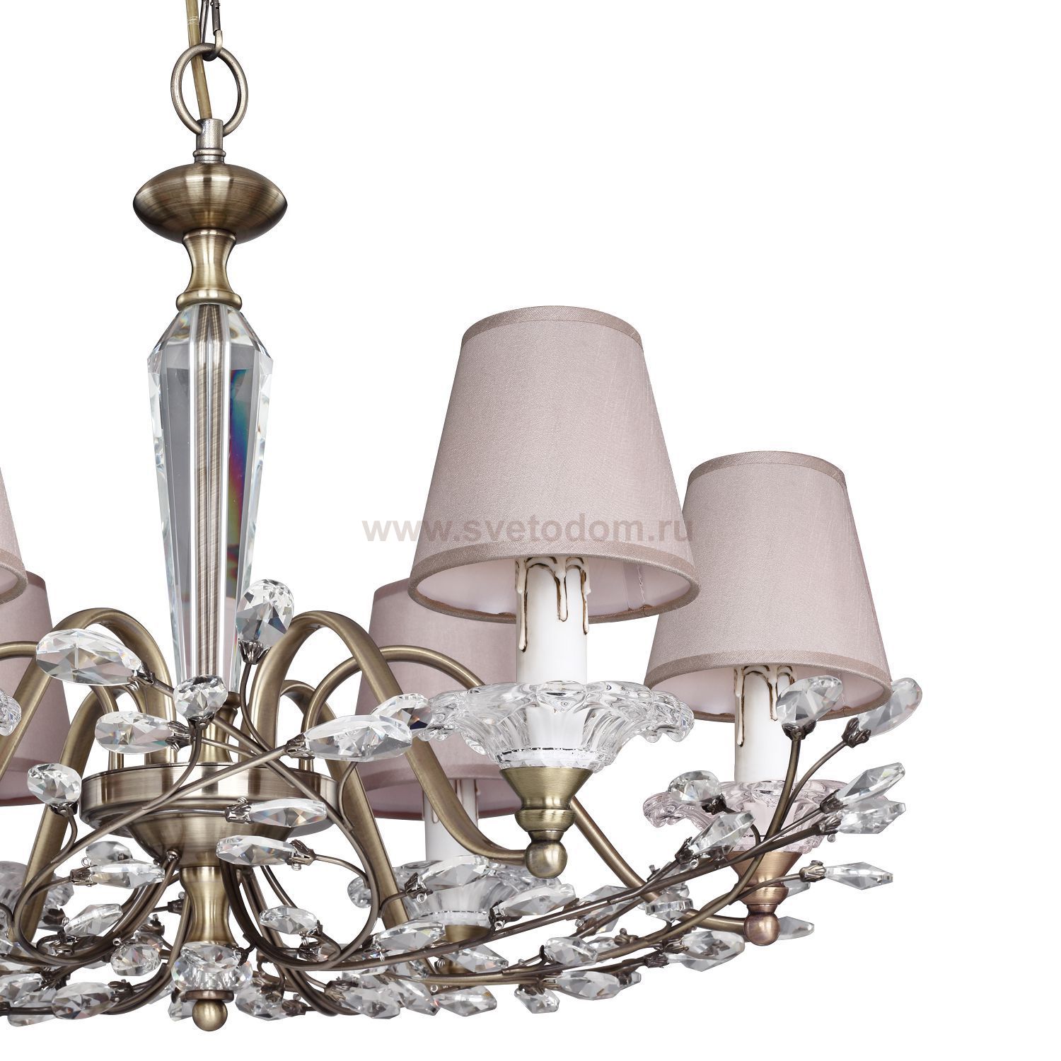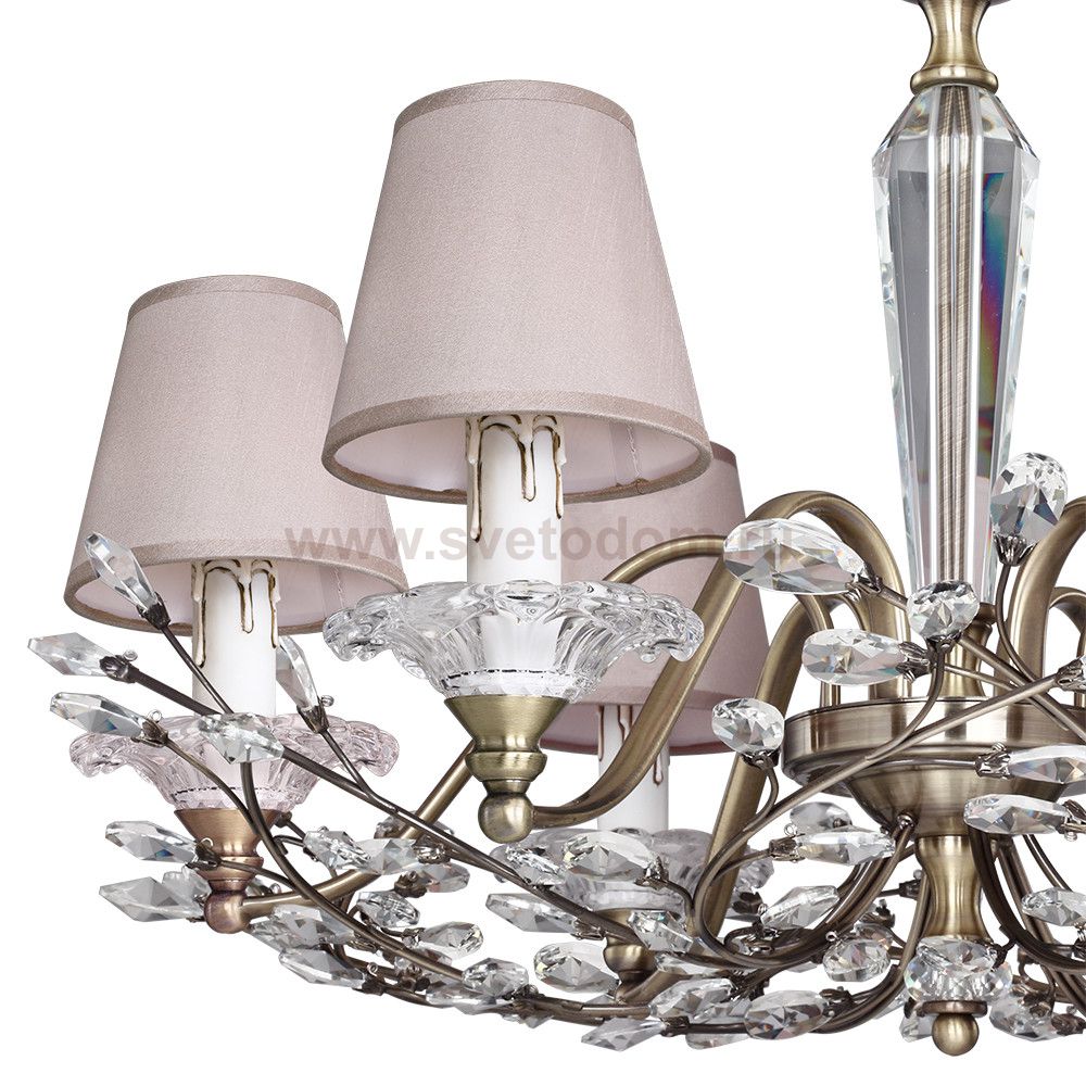 каркас цвета античной бронзы, абажуры из шелковой ткани тепло-бежевого цвета, хрусталь высшего качества Материал плафона