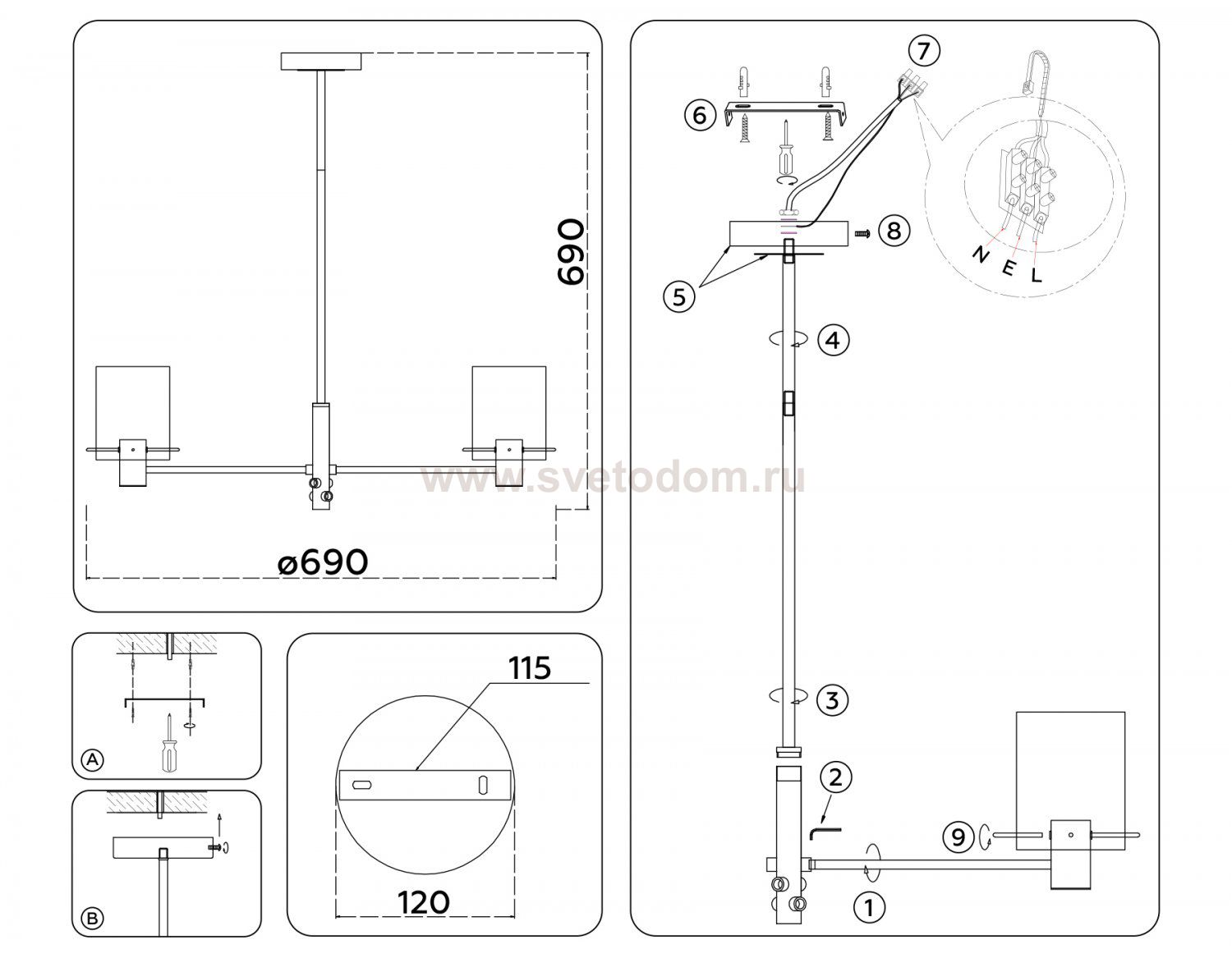 ![]() Люстра на штанге Ambrella LH55503/9 SN/BK/CL сатин никель/черный/прозрачный E14*9 max 40W D760*760 20690 руб.