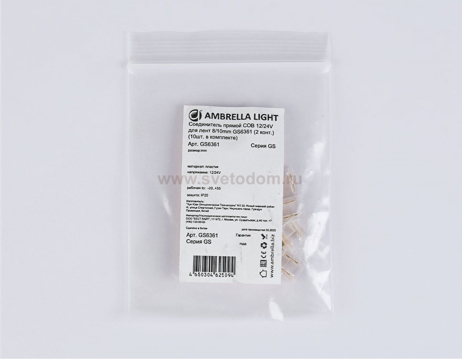 Соединитель прямой COB 12/24V для лент 8/10mm GS6361 (2 конт.) (10шт. в комплекте) Размеры