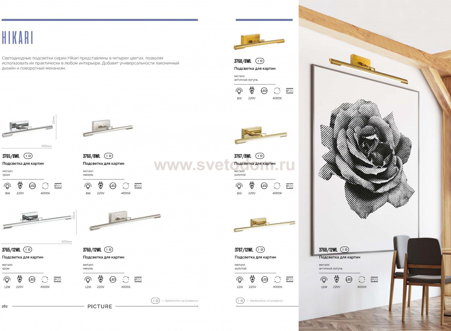 3767/12WL PICTURE LN19 245 золотой Подсветка для картин с выкл. LED 12W 4000К 1015Лм 220V HIKARI Штрих-код