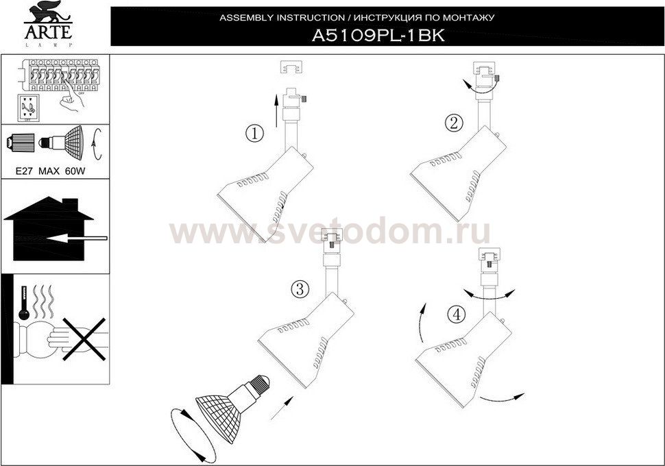 Светильник для трека под E27 цоколь Arte lamp A5109PL-1BK TRACK является важной составляющей современного функционального освещения на шинопроводе / треке для гостиной, зала, холла или другого помещения. При выборе обратите внимание на характеристики, позволяющие купить подходящие комплектующие из аналогичной коллекции и в той же цветовой гамме, что сделает помещение по-дизайнерски профессиональным и законченным.