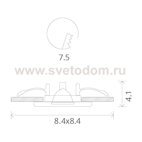 Данный размер указывает какое отверстие необходимо сделать для правильного монтажа. Зачастую светильники выбирают после ремонта и сделанных монтажных отверстий, тогда подбор осуществляется строго в размер +/- 2-5мм.