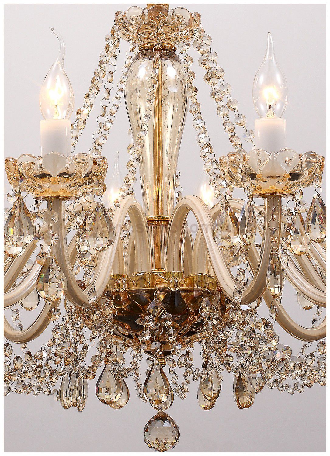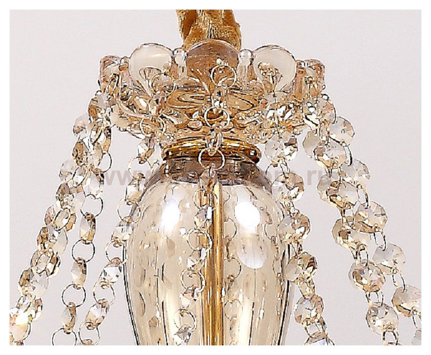 арматура золотого цвета, хрусталь высшего качества, стеклянные рожки и блюдца цвета "золотое шампанское" Материал плафона