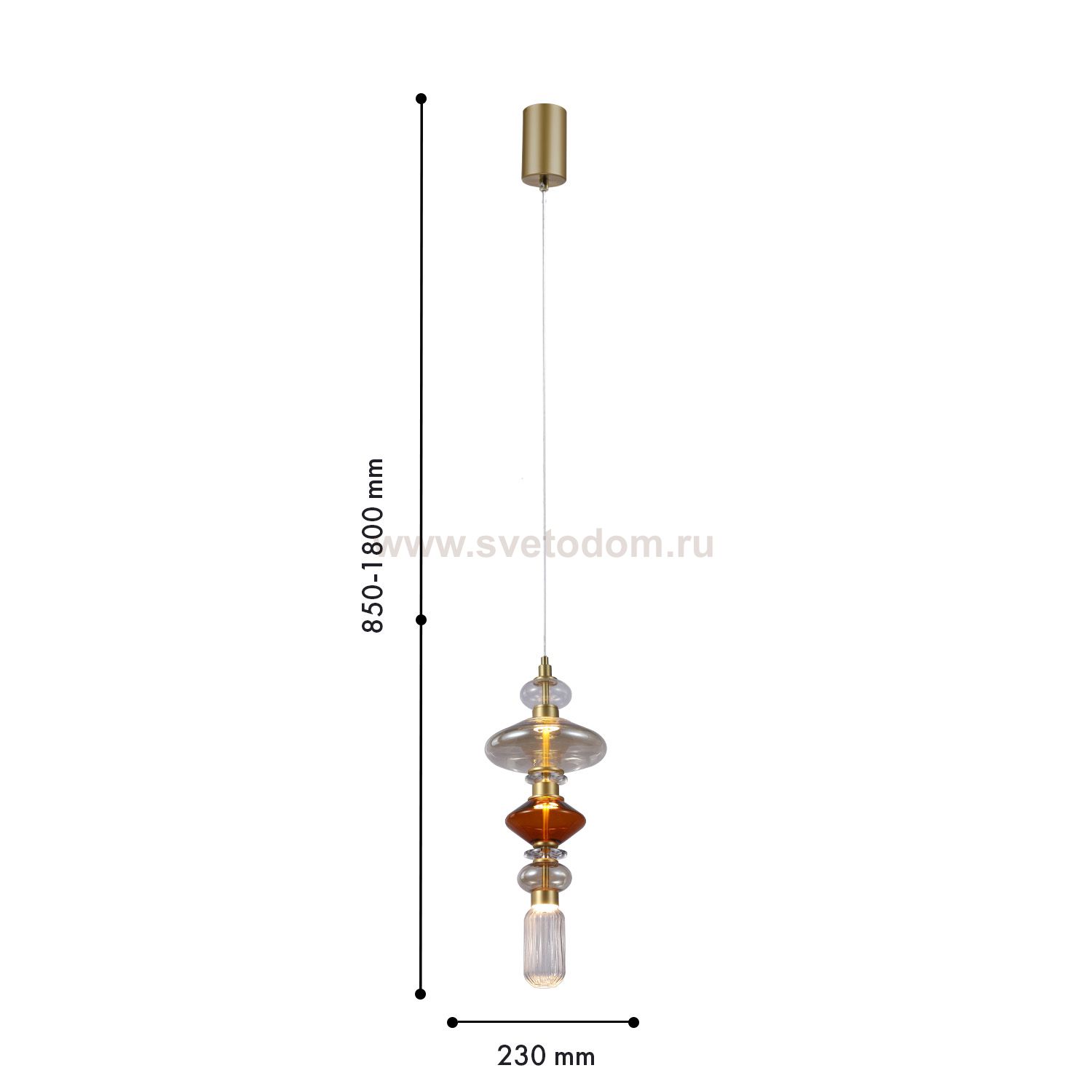 Подвес с плафоном из стекла, выполненного по муранской технологии в прозрачном, янтарном, дымчато-сером и красно-коричневом цвете, модуль LED и регули Декор