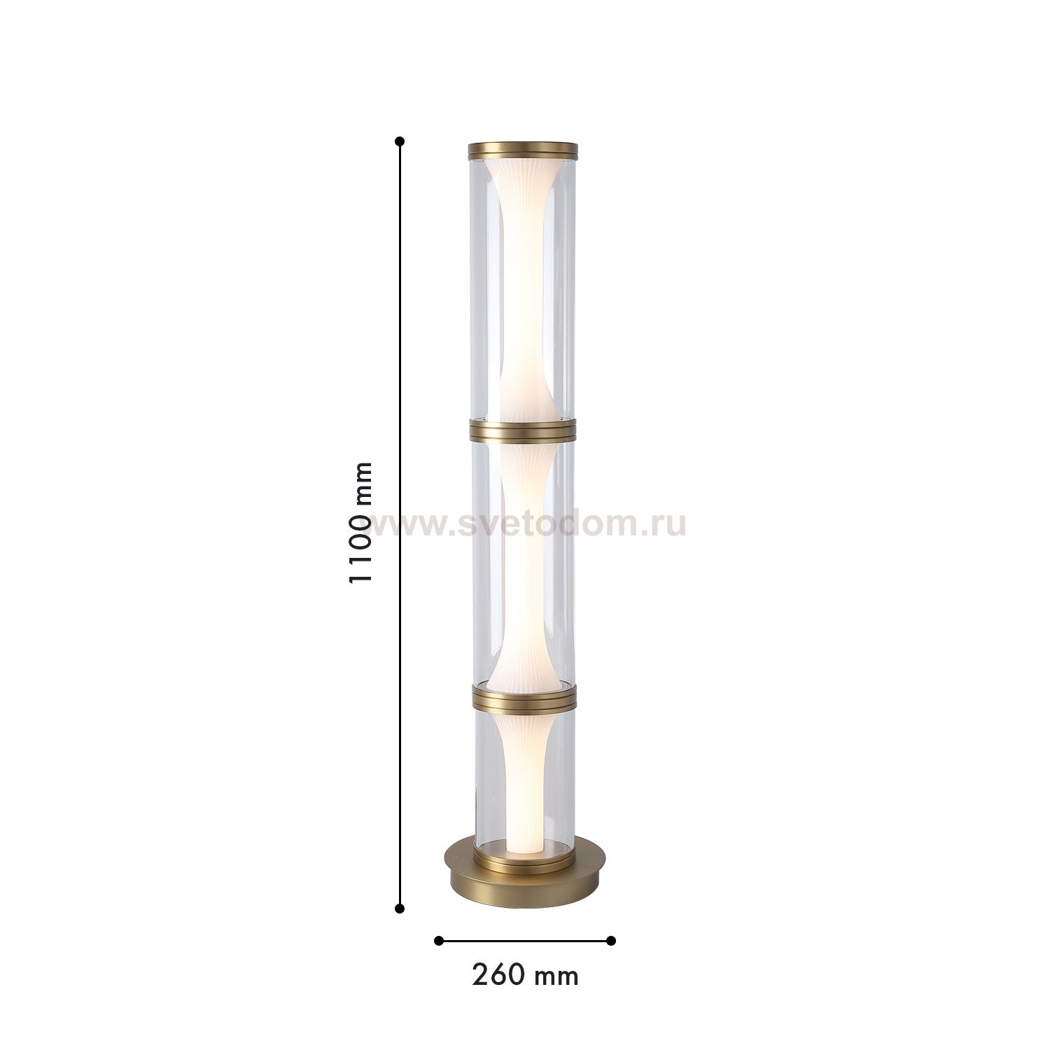 Торшер с тремя сегментами с двойными плафонами в виде стеклянных цилиндров, внутренние рифленые белые плафоны, с расположенными в них LED-лентами, эле Серия