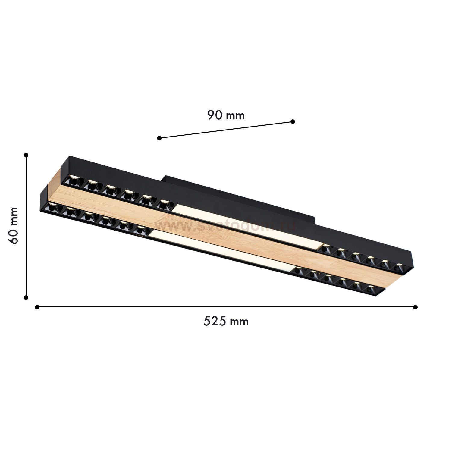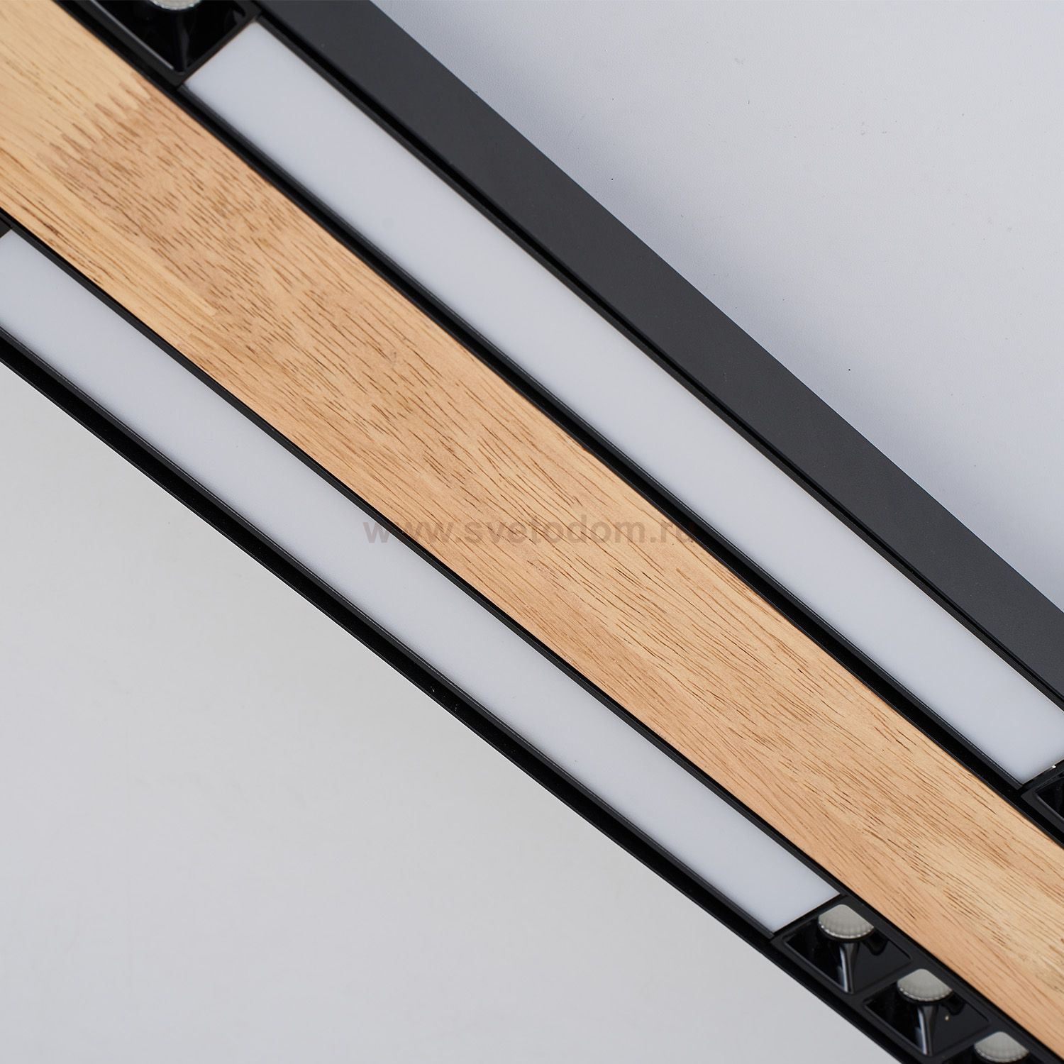 Декоративная вставка из МДФ с фактурой дерева на основании светильника, матовый черный каркас, LED-модуль Серия