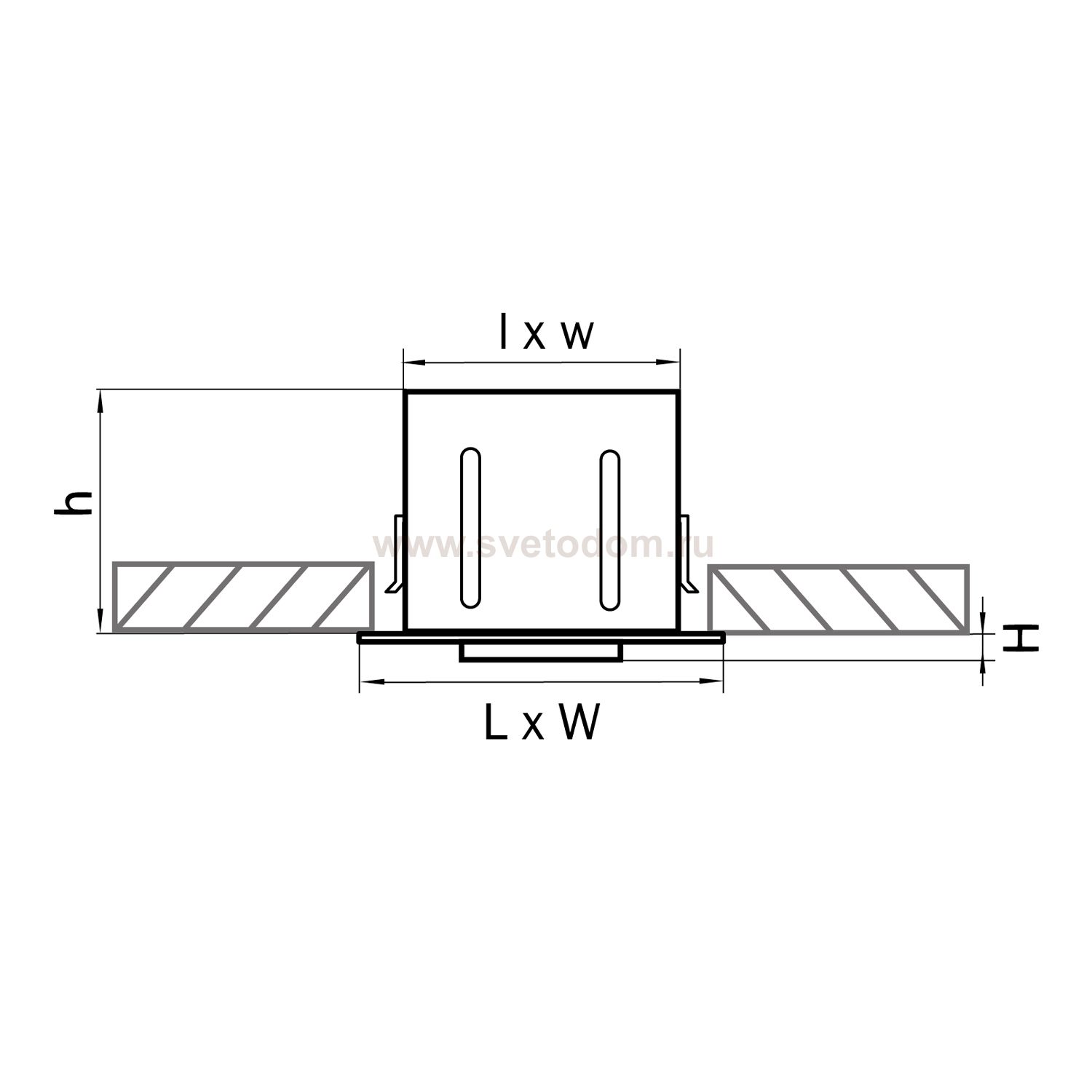 Данный размер указывает какое отверстие необходимо сделать для правильного монтажа. Зачастую светильники выбирают после ремонта и сделанных монтажных отверстий, тогда подбор осуществляется строго в размер +/- 2-5мм.