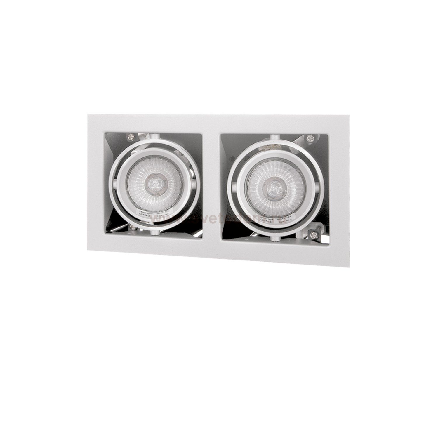 Врезное отверстие: 95x190 h100; Внешние габариты: 110x206 H5; Материал - основание/плафон: металл; Цвет-основание/плафон: белый; Лампа: 12 В MR16 max 50 Вт 2, 220 В HP16 max 50 Вт;