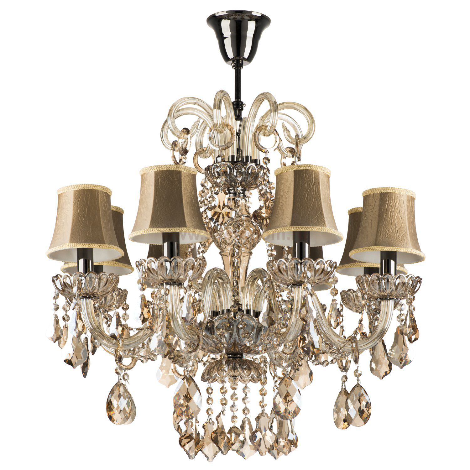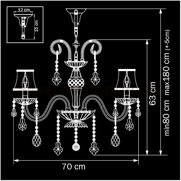 <Высота min-max (см): 80-180; Ширина (см): 70; Вес (кг): 12,45; Кол-во ламп: 8xE14; Мощность max (W): 40; Цвет основания/цвет стекла или абажура: Tinted gold / Cognac cristal;