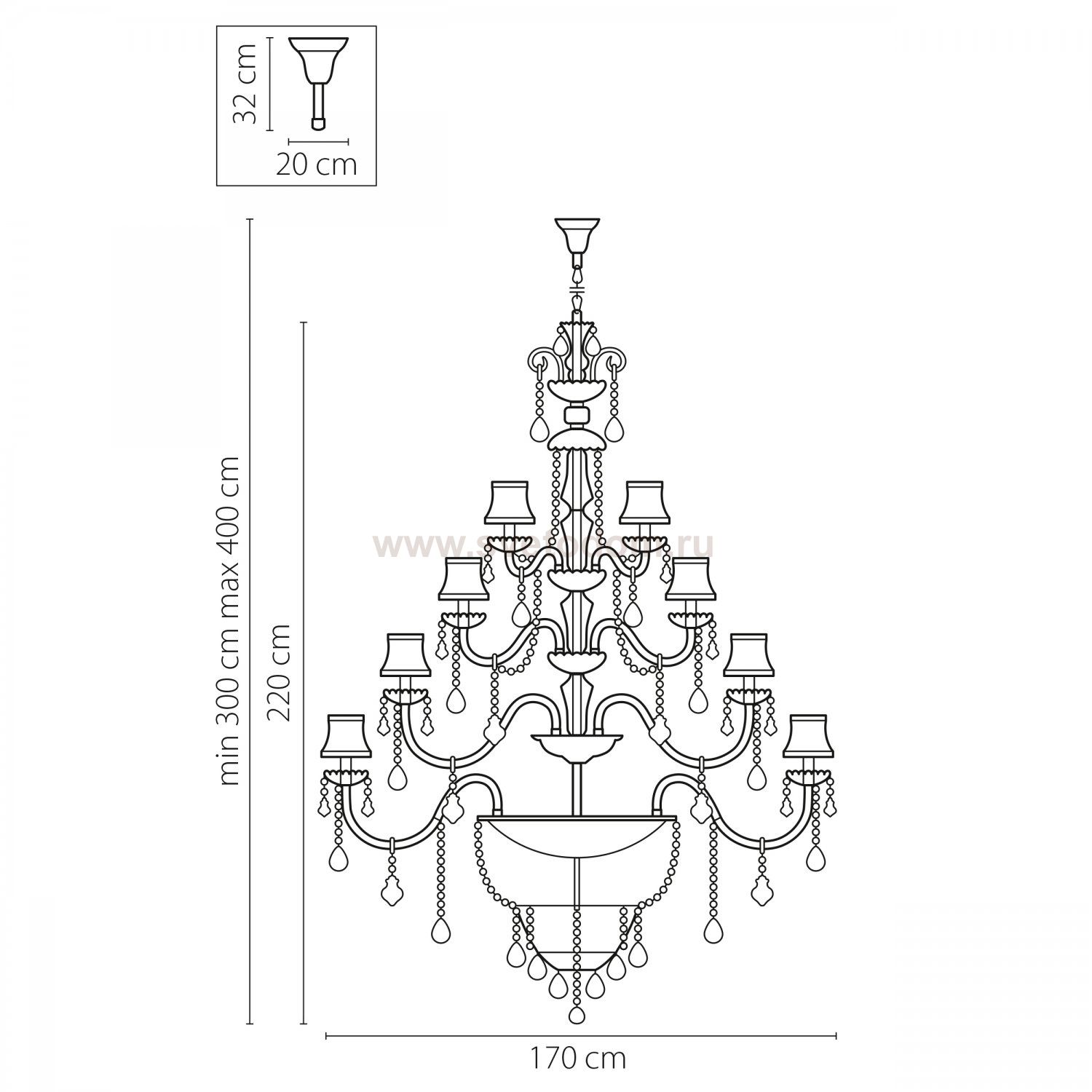 Максимальная потребляемая мощность лампы, которую можно использовать в люстре.