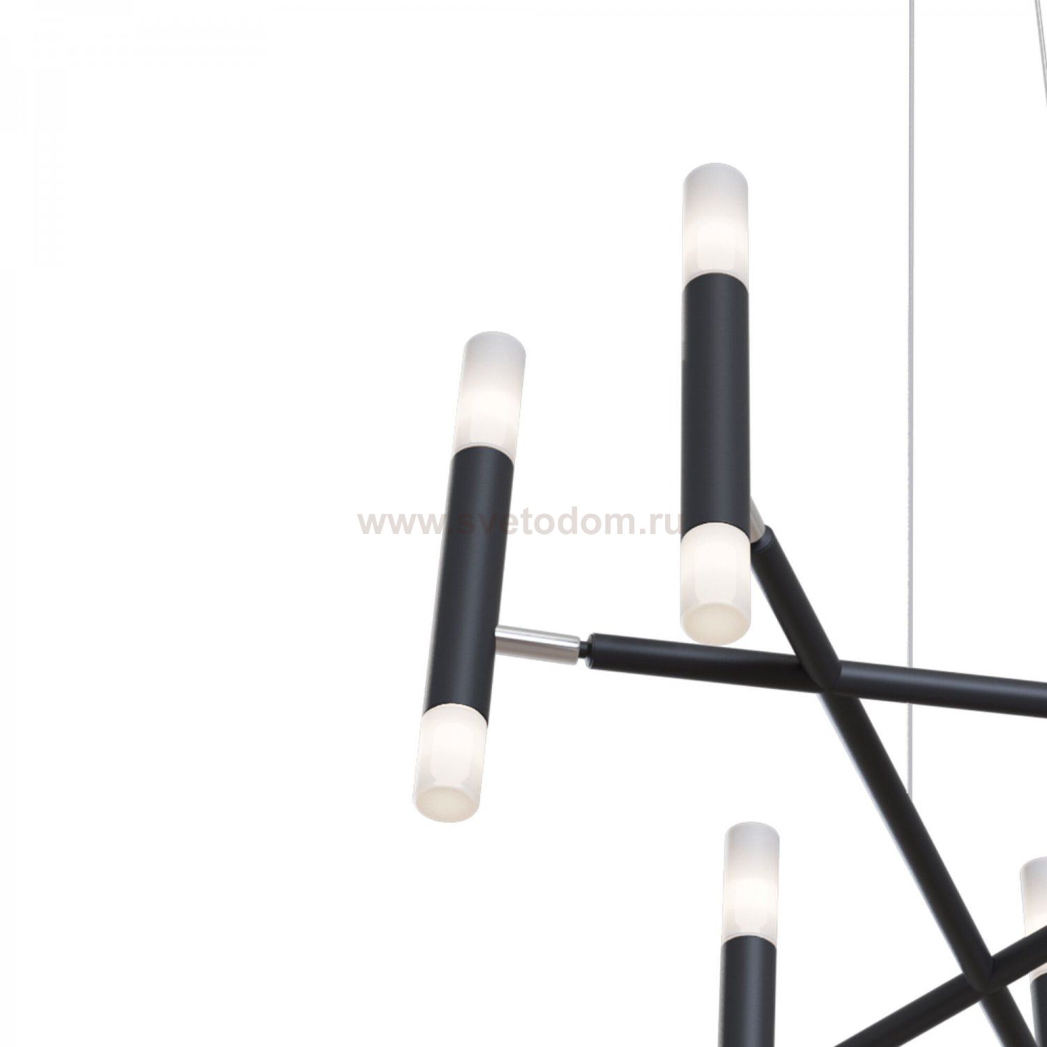 Металлическая арматура в матовом черном цвете. Цилиндрические плафоны вра щаются на 340° по горизонтали и 90° по вертикали. Возможность видоизменять дизайн светильника. Рассеиватель из матового стекла.