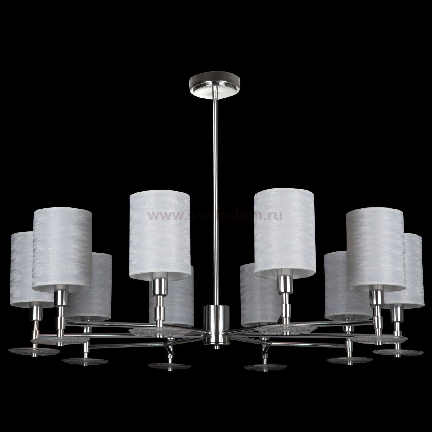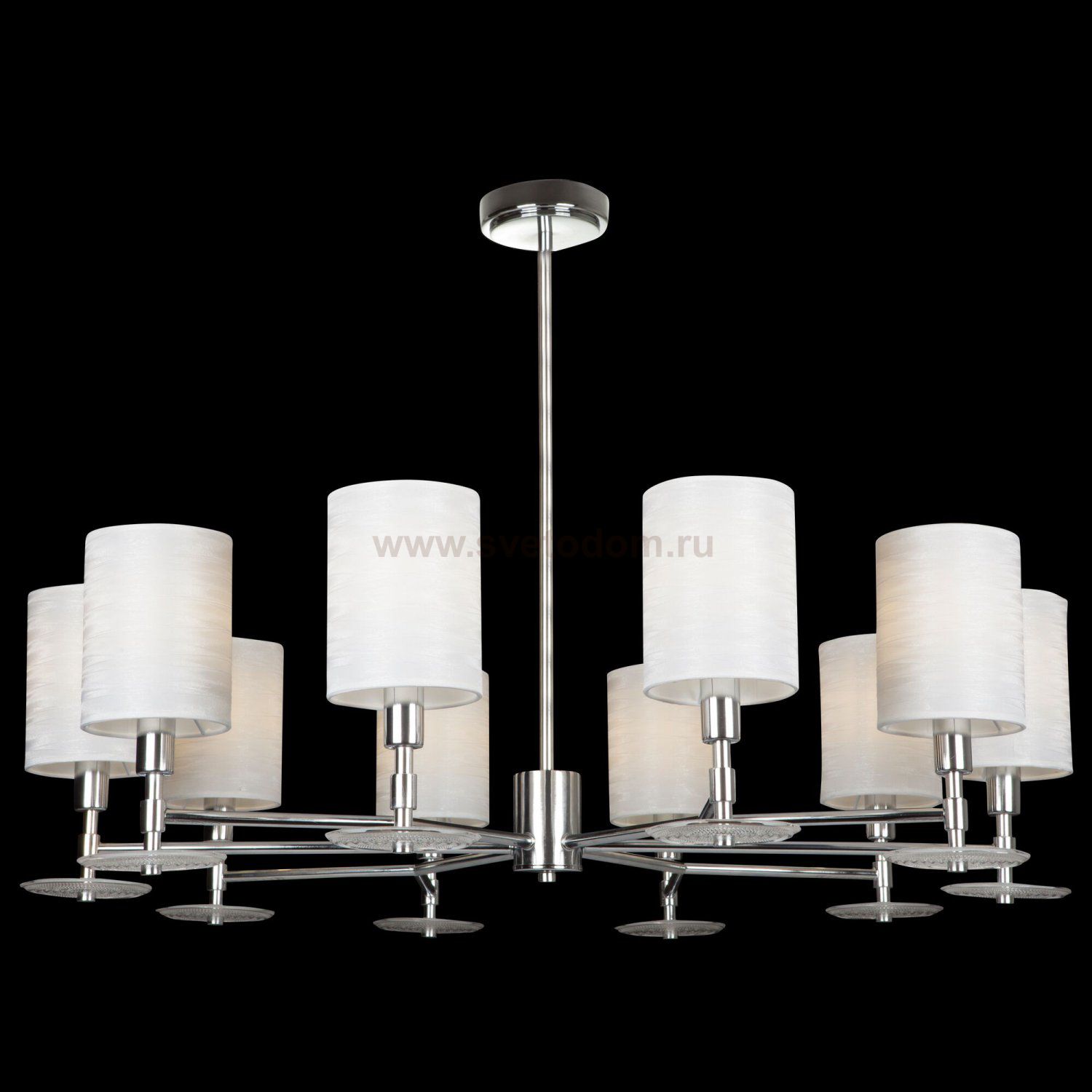 Особенности модели MOD034PL-10CH: Простой каркас из никелированного металла образован сочетанием горизонтальных и вертикальных линий. Он украшает декоративные блюдца из прессованного стекла. Отдельного внимания в конструкции светильников заслуживают абажуры, сделанные из ткани на ПВХ. Они добавляют светильникам элегантности и тепла.