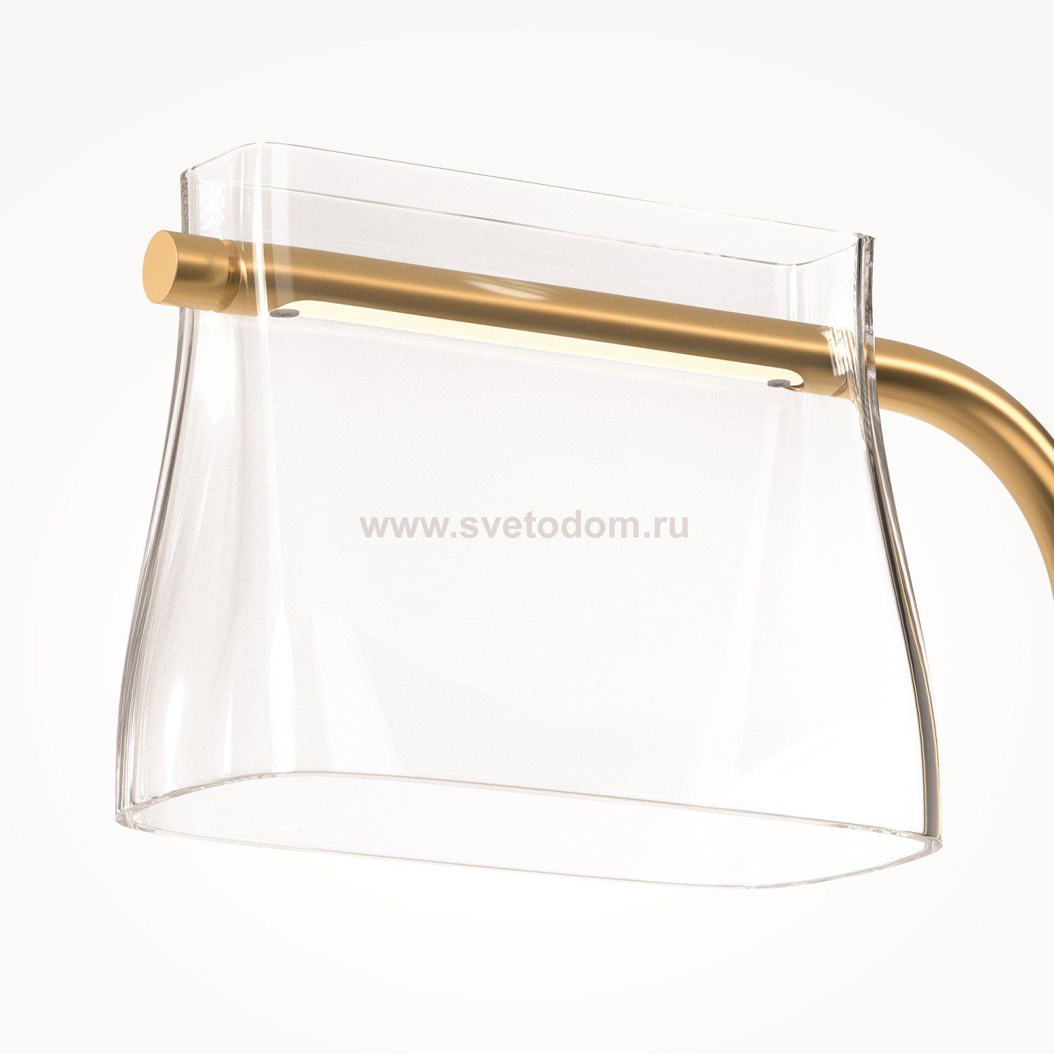 Цвет металлической арматуры — латунь с сатинированным финишем, плафоны — прозрачное стекло. Источник света: LED. Цветовая температура светильников 3000К, угол рассеивания — 120 градусов. Настенные бра и подвесные светильники оснащены регулируемым проводом длиной до 3 метров, что позволяет использовать их в помещениях с высокими потолками.
